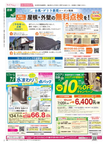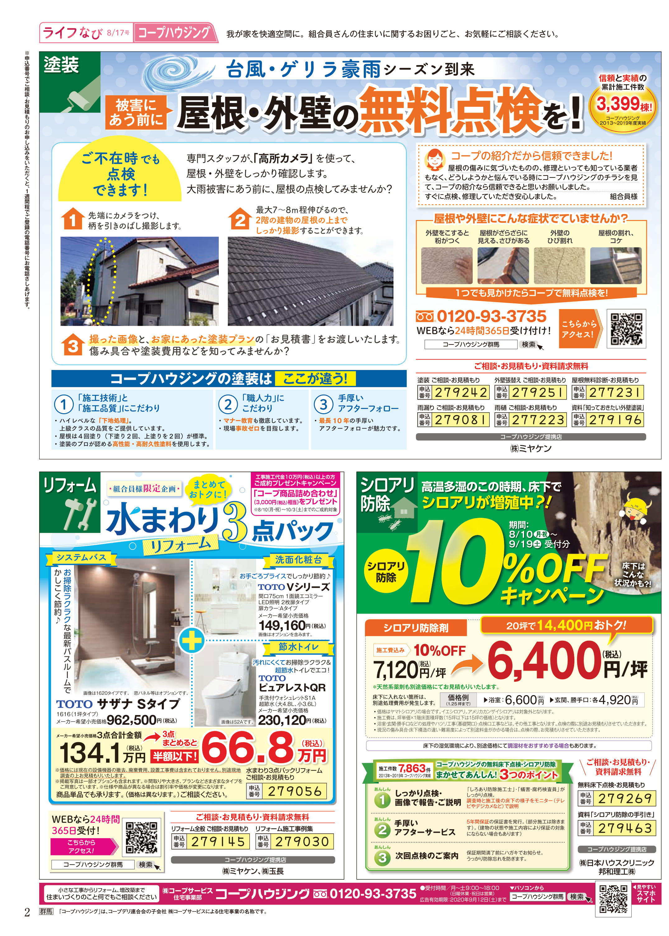 HOME毎月発行チラシ『ライフなび』群馬ライフなび 群馬 2020年8月17日号 ライフなび 群馬 2020年8月17日号 ライフなび 群馬 2020年8月17日号 毎月発行チラシ『ライフなび』一覧はこちら 施工事例 施工事例一覧 内装 外装 水回り 組合員の声 組合員の声一覧 カテゴリーなし お役立ち情報 暮らしに役立つ情報 リフォームメニュー表 毎月発行チラシ『ライフなび』 シロアリ防除について アフターフォロー お問い合わせ・お申し込みからお支払いまでの流れ よくある質問 お問い合わせ お問い合わせ 各エリアの情報はこちら 各エリア情報 東京 埼玉 千葉 茨城 群馬 長野 新潟 その他の情報はこちら チケット くらしのサービス 葬祭
