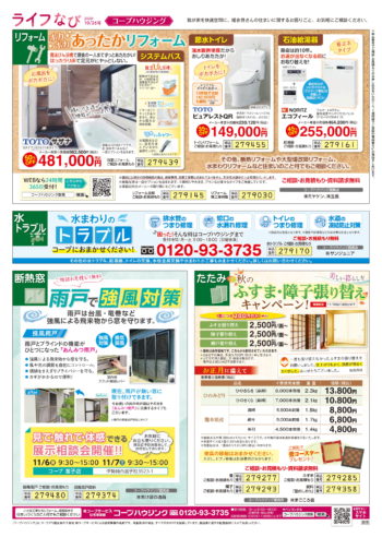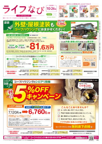HOME毎月発行チラシ『ライフなび』群馬ライフなび 群馬 2020年10月26日号 ライフなび 群馬 2020年10月26日号 ライフなび 群馬 2020年10月26日号 毎月発行チラシ『ライフなび』一覧はこちら 施工事例 施工事例一覧 内装 外装 水回り 組合員の声 組合員の声一覧 カテゴリーなし お役立ち情報 暮らしに役立つ情報 リフォームメニュー表 毎月発行チラシ『ライフなび』 シロアリ防除について アフターフォロー お問い合わせ・お申し込みからお支払いまでの流れ よくある質問 お問い合わせ お問い合わせ 各エリアの情報はこちら 各エリア情報 東京 埼玉 千葉 茨城 群馬 長野 新潟 その他の情報はこちら チケット くらしのサービス 葬祭