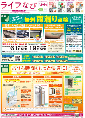 HOME毎月発行チラシ『ライフなび』群馬ライフなび 群馬 2021年12月6日号 ライフなび 群馬 2021年12月6日号 ライフなび 群馬 2021年12月6日号 毎月発行チラシ『ライフなび』一覧はこちら 施工事例 施工事例一覧 内装 外装 水回り 組合員の声 組合員の声一覧 カテゴリーなし お役立ち情報 暮らしに役立つ情報 リフォームメニュー表 毎月発行チラシ『ライフなび』 シロアリ防除について アフターフォロー お問い合わせ・お申し込みからお支払いまでの流れ よくある質問 お問い合わせ お問い合わせ 各エリアの情報はこちら 各エリア情報 東京 埼玉 千葉 茨城 群馬 長野 新潟 その他の情報はこちら チケット くらしのサービス 葬祭