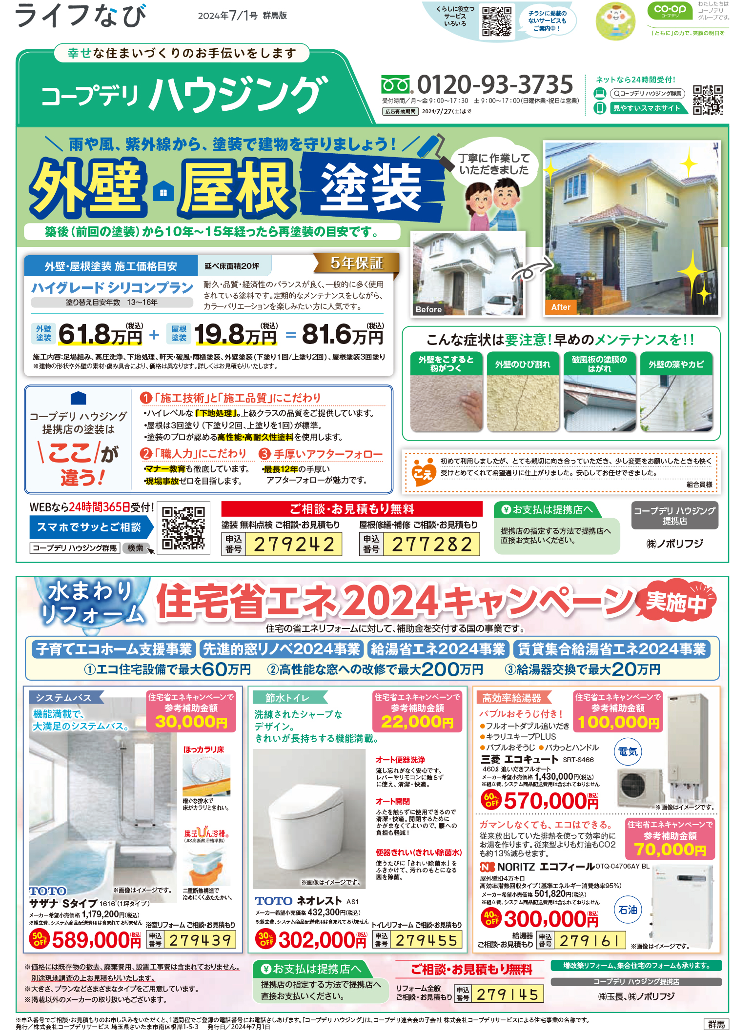 HOME毎月発行チラシ『ライフなび』群馬ライフなび 群馬 2024年7月1日号 ライフなび 群馬 2024年7月1日号 ライフなび 群馬 2024年7月1日号 毎月発行チラシ『ライフなび』一覧はこちら 施工事例 施工事例一覧 内装 外装 水回り 組合員の声 組合員の声一覧 カテゴリーなし お役立ち情報 暮らしに役立つ情報 リフォームメニュー表 毎月発行チラシ『ライフなび』 シロアリ防除について アフターフォロー お問い合わせ・お申し込みからお支払いまでの流れ よくある質問 お問い合わせ お問い合わせ 各エリアの情報はこちら 各エリア情報 東京 埼玉 千葉 茨城 群馬 長野 新潟 その他の情報はこちら チケット くらしのサービス 葬祭