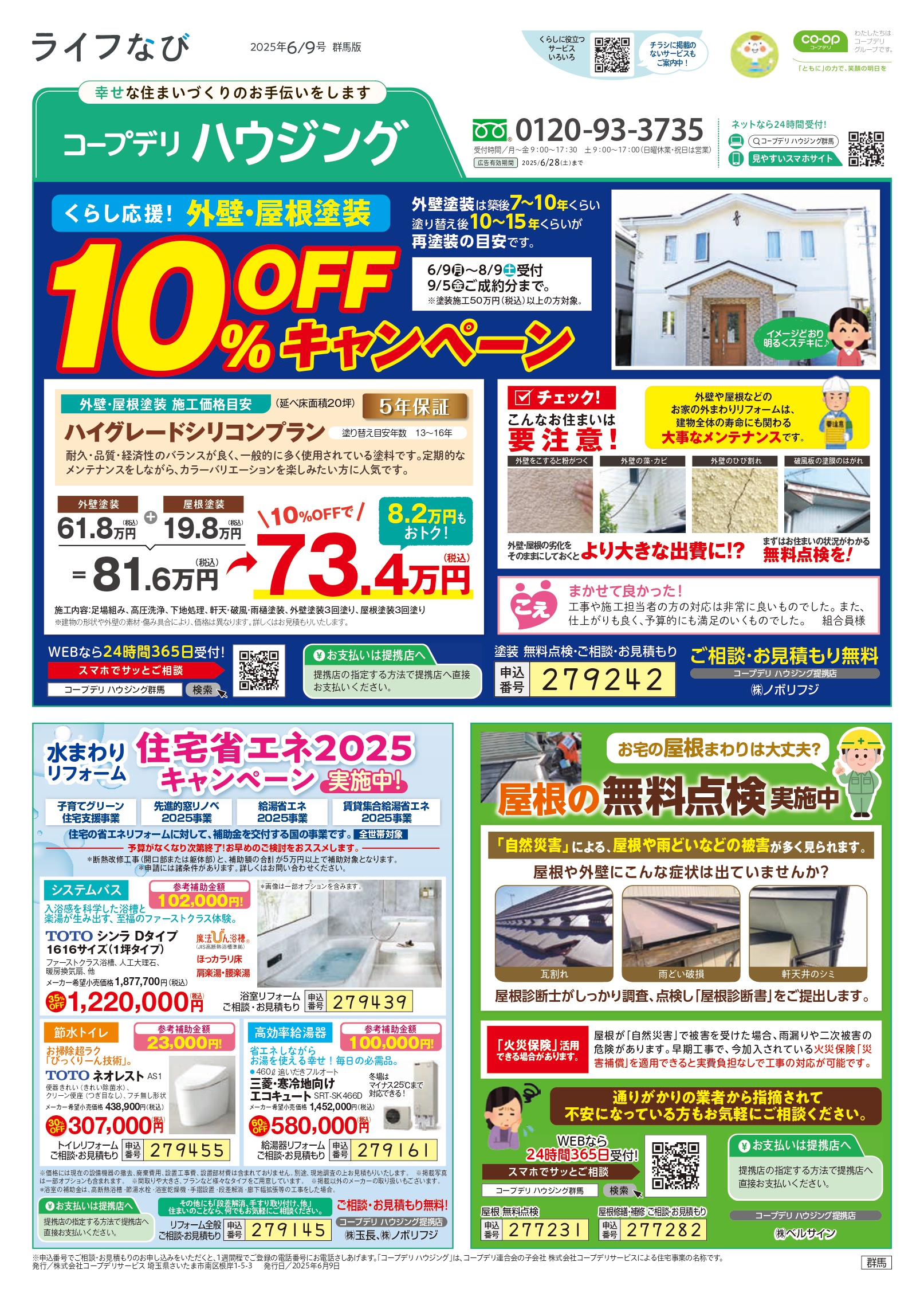 HOME毎月発行チラシ『ライフなび』群馬ライフなび 群馬 2025年6月9日号 ライフなび 群馬 2025年6月9日号 ライフなび 群馬 2025年6月9日号 毎月発行チラシ『ライフなび』一覧はこちら 施工事例 施工事例一覧 内装 外装 水回り 組合員の声 組合員の声一覧 カテゴリーなし お役立ち情報 暮らしに役立つ情報 リフォームメニュー表 毎月発行チラシ『ライフなび』 シロアリ防除について アフターフォロー お問い合わせ・お申し込みからお支払いまでの流れ よくある質問 お問い合わせ お問い合わせ 各エリアの情報はこちら 各エリア情報 東京 埼玉 千葉 茨城 群馬 長野 新潟 その他の情報はこちら チケット くらしのサービス 葬祭