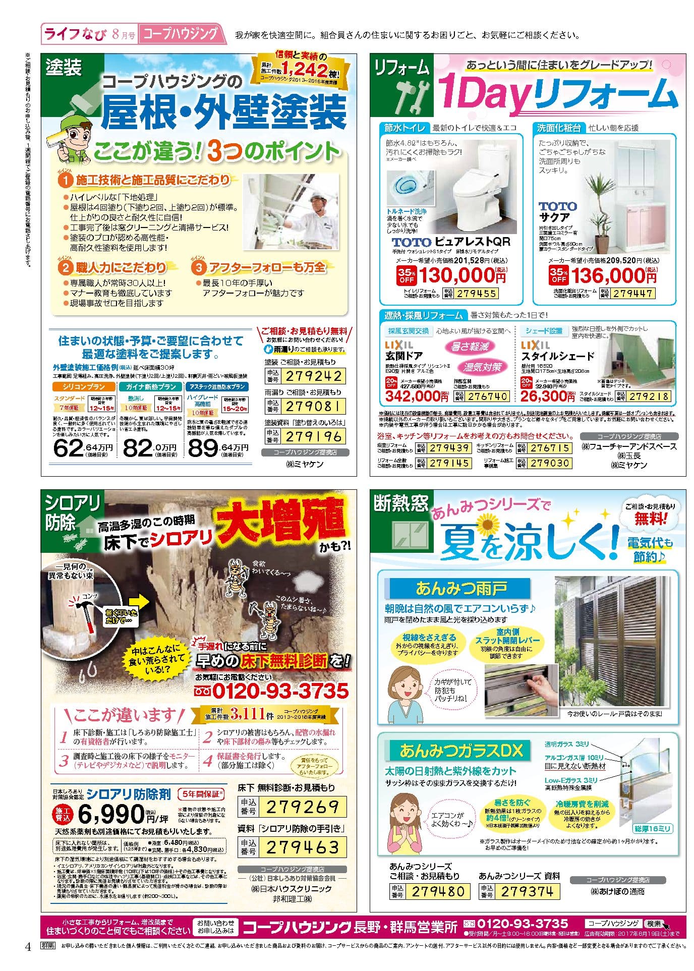 HOME毎月発行チラシ『ライフなび』群馬ライフなび 群馬 8月号 ライフなび 群馬 8月号 ライフなび 群馬 8月号 毎月発行チラシ『ライフなび』一覧はこちら 施工事例 施工事例一覧 内装 外装 水回り 組合員の声 組合員の声一覧 カテゴリーなし お役立ち情報 暮らしに役立つ情報 リフォームメニュー表 毎月発行チラシ『ライフなび』 シロアリ防除について アフターフォロー お問い合わせ・お申し込みからお支払いまでの流れ よくある質問 お問い合わせ お問い合わせ 各エリアの情報はこちら 各エリア情報 東京 埼玉 千葉 茨城 群馬 長野 新潟 その他の情報はこちら チケット くらしのサービス 葬祭