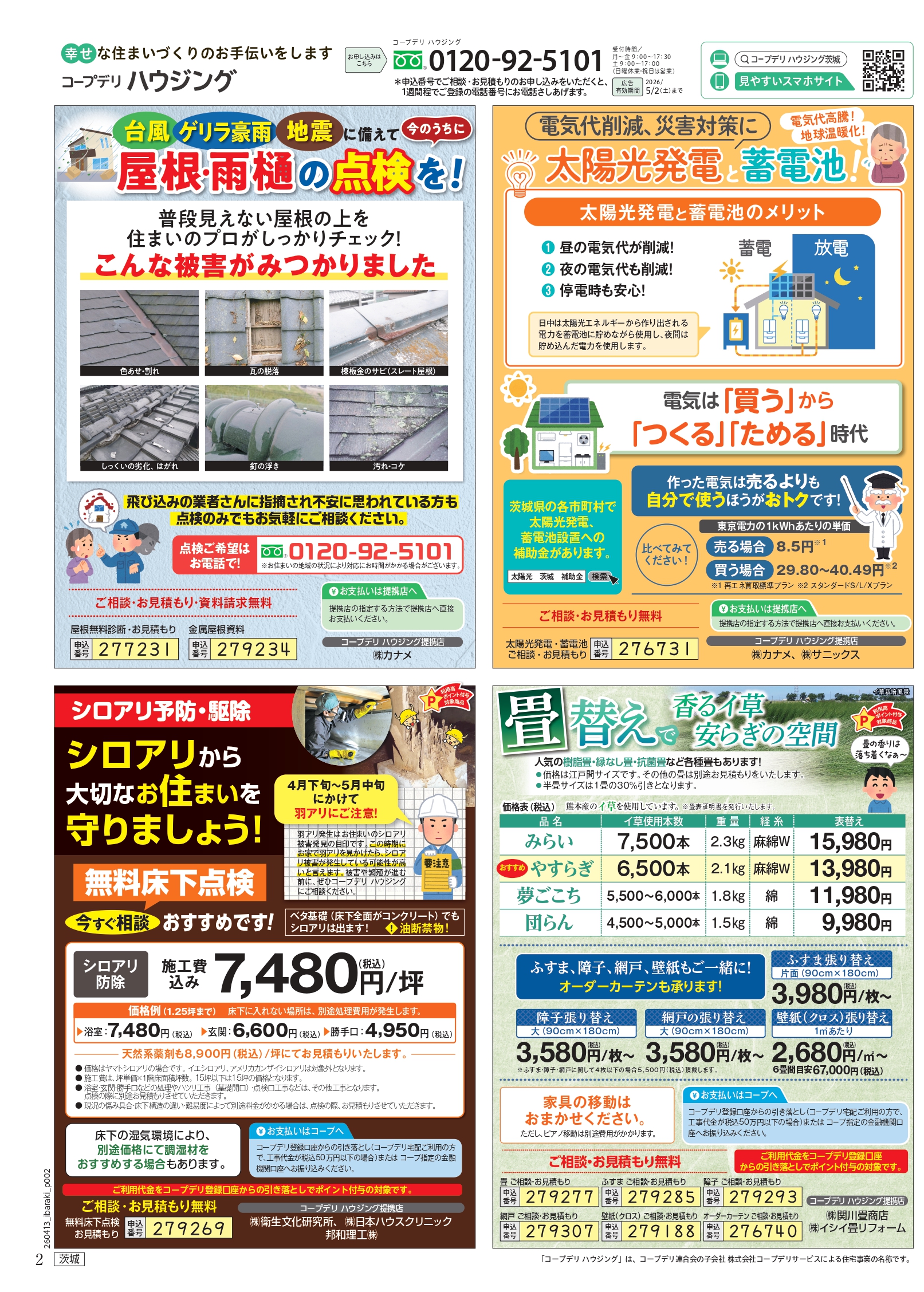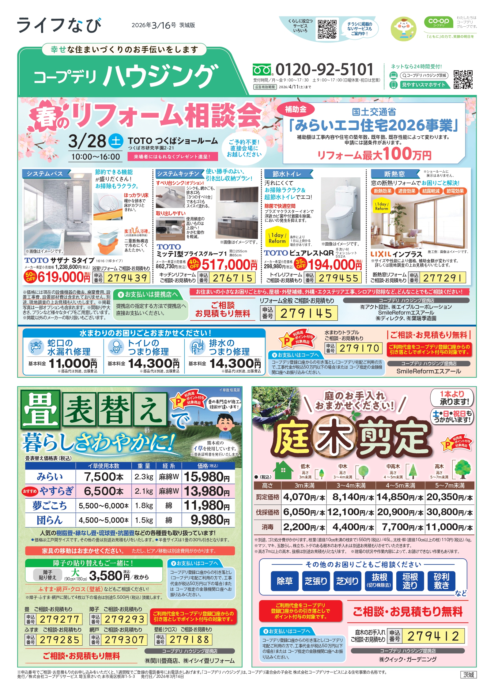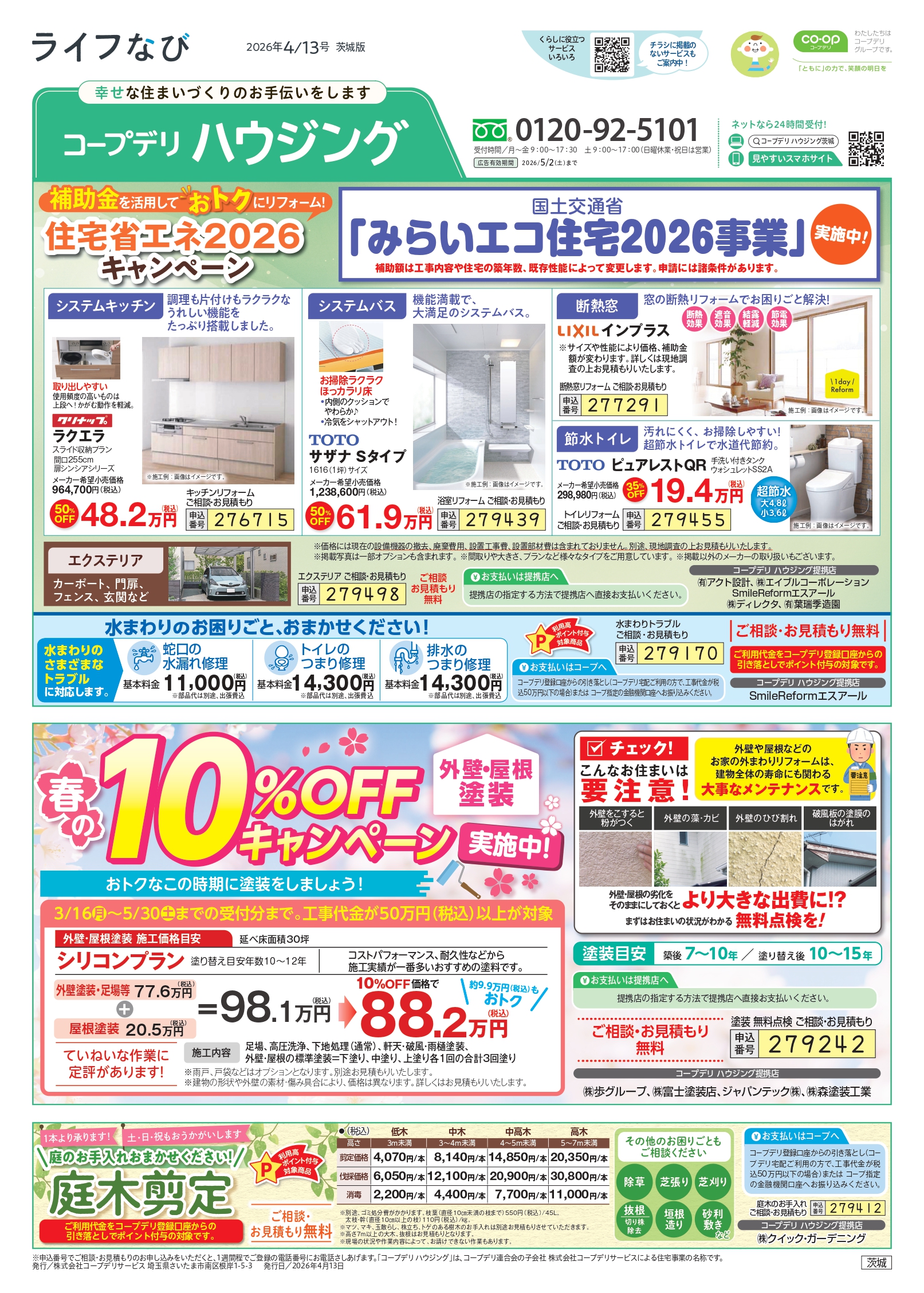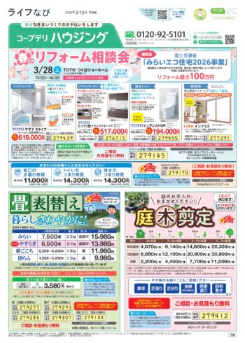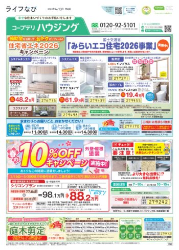 HOME毎月発行チラシ『ライフなび』茨城 茨城 ライフなび 茨城 2026年4月13日号 ライフなび 茨城 2026年3月16日号 ライフなび 茨城 2026年2月16日号 ライフなび 茨城 2026年1月12日号 ライフなび 茨城 2025年12月1日号 ライフなび 茨城 2025年10月27日号 ライフなび 茨城 2025年9月29日号 ライフなび 茨城 2025年9月8日号 ライフなび 茨城 2025年8月4日号 ライフなび 茨城 2025年7月14日号 毎月発行チラシ『ライフなび』一覧はこちら 施工事例 施工事例一覧 内装 外装 水回り 組合員の声 組合員の声一覧 カテゴリーなし お役立ち情報 暮らしに役立つ情報 リフォームメニュー表 毎月発行チラシ『ライフなび』 シロアリ防除について アフターフォロー お問い合わせ・お申し込みからお支払いまでの流れ よくある質問 お問い合わせ お問い合わせ 各エリアの情報はこちら 各エリア情報 東京 埼玉 千葉 茨城 群馬 長野 新潟 その他の情報はこちら チケット くらしのサービス 葬祭