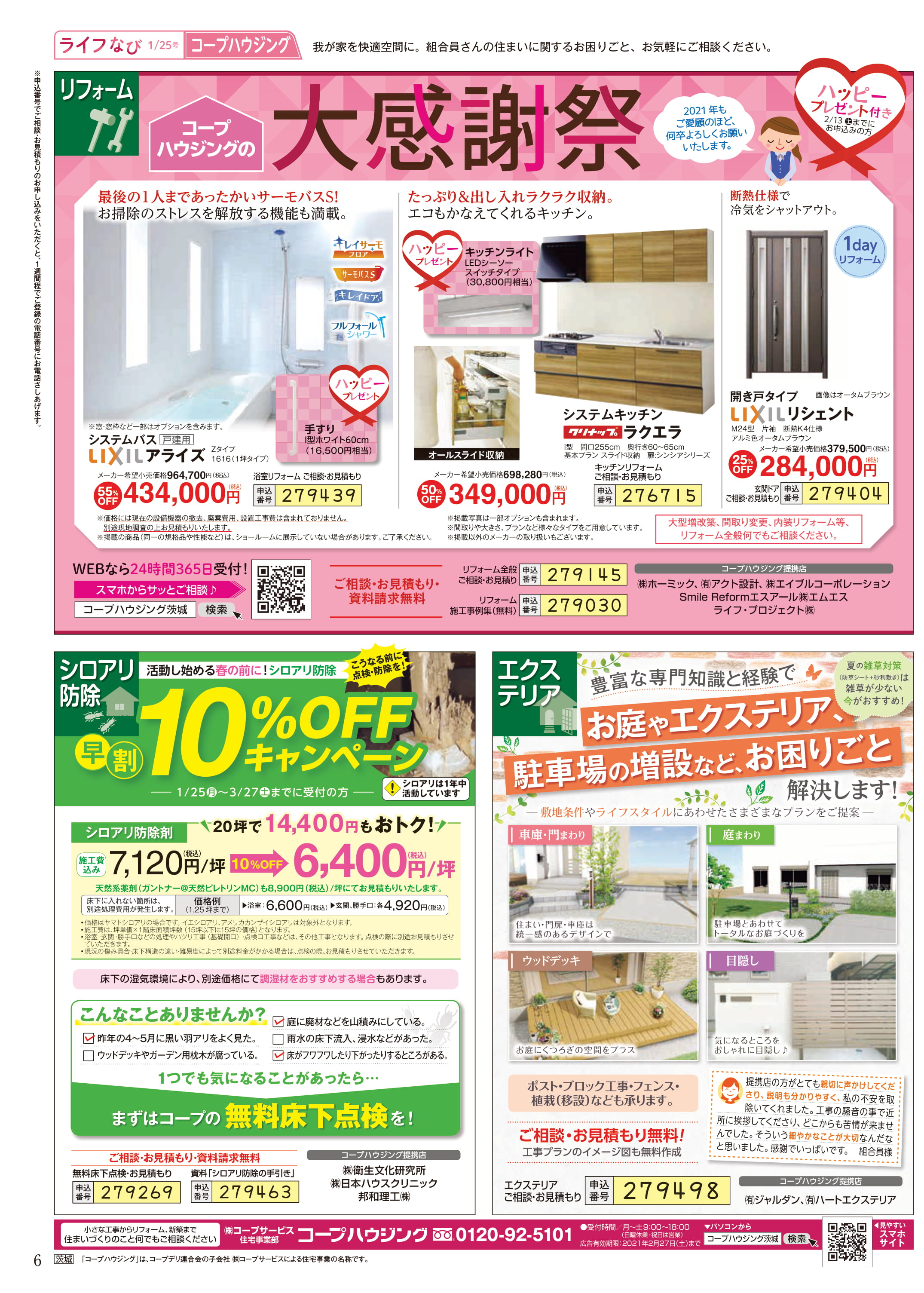 HOME毎月発行チラシ『ライフなび』茨城ライフなび 茨城 2021年1月25日号 ライフなび 茨城 2021年1月25日号 ライフなび 茨城 2021年1月25日号 毎月発行チラシ『ライフなび』一覧はこちら 施工事例 施工事例一覧 内装 外装 水回り 組合員の声 組合員の声一覧 カテゴリーなし お役立ち情報 暮らしに役立つ情報 リフォームメニュー表 毎月発行チラシ『ライフなび』 シロアリ防除について アフターフォロー お問い合わせ・お申し込みからお支払いまでの流れ よくある質問 お問い合わせ お問い合わせ 各エリアの情報はこちら 各エリア情報 東京 埼玉 千葉 茨城 群馬 長野 新潟 その他の情報はこちら チケット くらしのサービス 葬祭