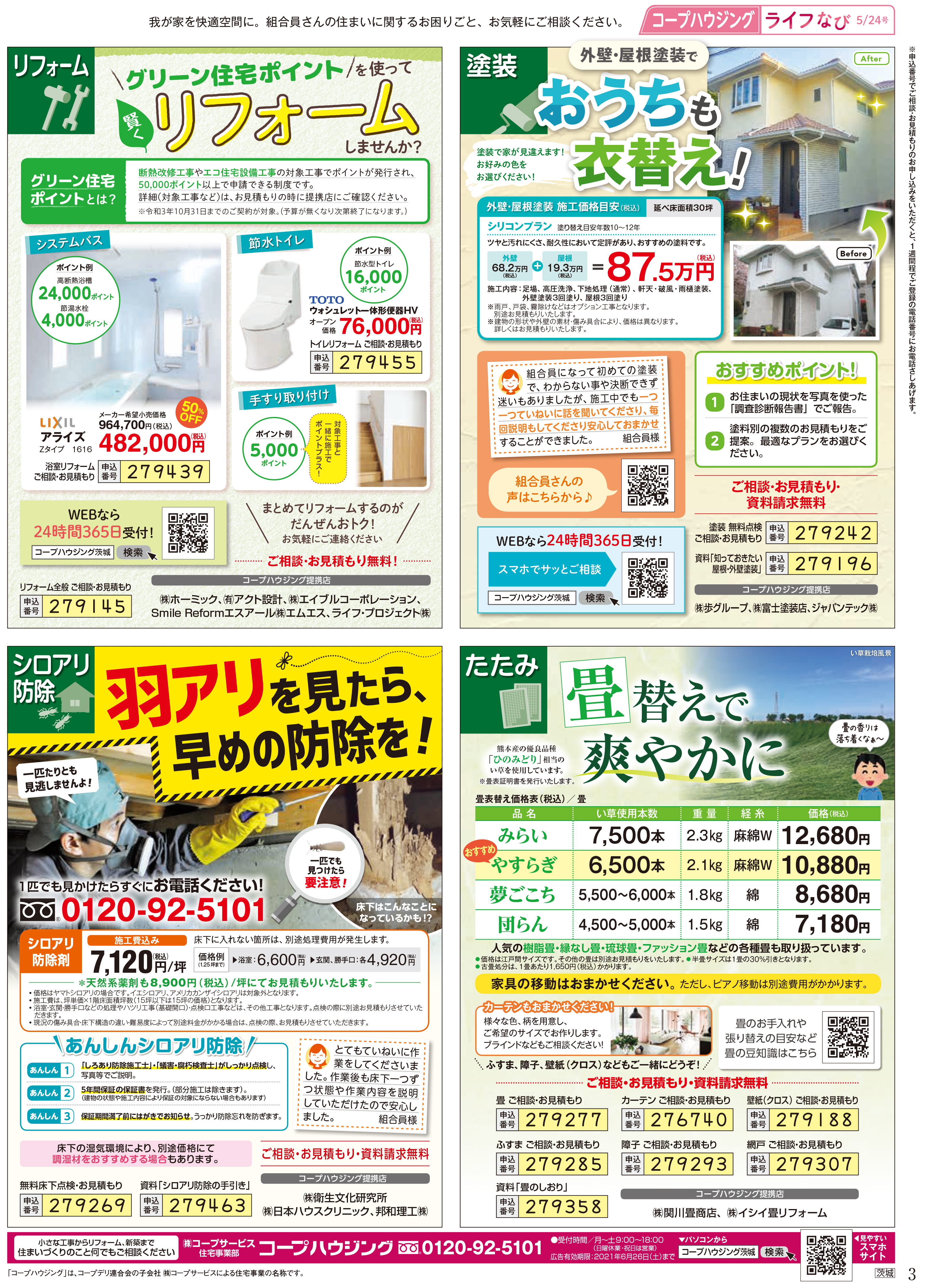 HOME毎月発行チラシ『ライフなび』茨城ライフなび 茨城 2021年5月24日号 ライフなび 茨城 2021年5月24日号 ライフなび 茨城 2021年5月24日号 毎月発行チラシ『ライフなび』一覧はこちら 施工事例 施工事例一覧 内装 外装 水回り 組合員の声 組合員の声一覧 カテゴリーなし お役立ち情報 暮らしに役立つ情報 リフォームメニュー表 毎月発行チラシ『ライフなび』 シロアリ防除について アフターフォロー お問い合わせ・お申し込みからお支払いまでの流れ よくある質問 お問い合わせ お問い合わせ 各エリアの情報はこちら 各エリア情報 東京 埼玉 千葉 茨城 群馬 長野 新潟 その他の情報はこちら チケット くらしのサービス 葬祭