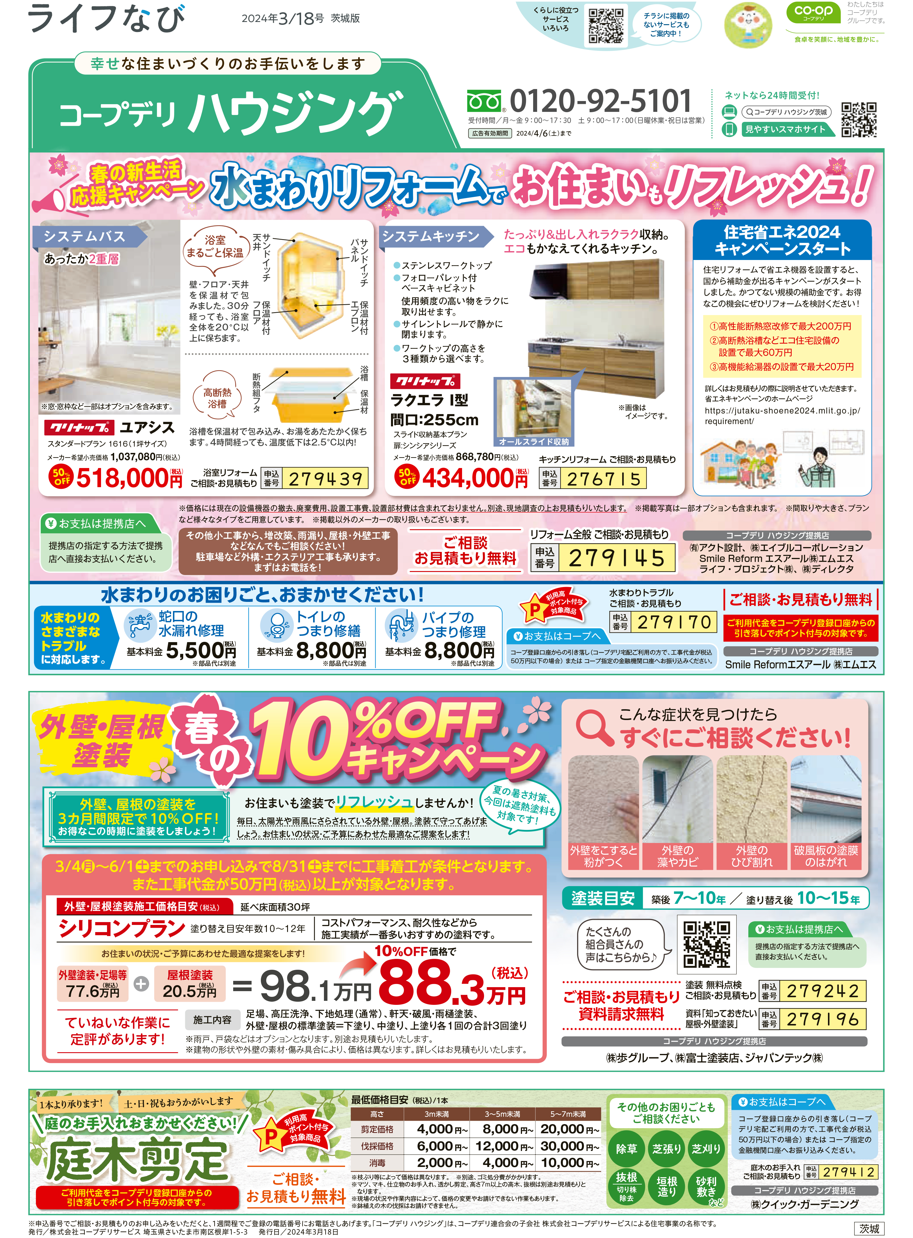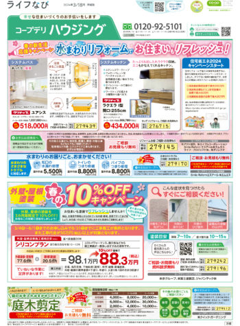 HOME毎月発行チラシ『ライフなび』茨城ライフなび 茨城 2024年3月18日号 ライフなび 茨城 2024年3月18日号 ライフなび 茨城 2024年3月18日号 毎月発行チラシ『ライフなび』一覧はこちら 施工事例 施工事例一覧 内装 外装 水回り 組合員の声 組合員の声一覧 カテゴリーなし お役立ち情報 暮らしに役立つ情報 リフォームメニュー表 毎月発行チラシ『ライフなび』 シロアリ防除について アフターフォロー お問い合わせ・お申し込みからお支払いまでの流れ よくある質問 お問い合わせ お問い合わせ 各エリアの情報はこちら 各エリア情報 東京 埼玉 千葉 茨城 群馬 長野 新潟 その他の情報はこちら チケット くらしのサービス 葬祭