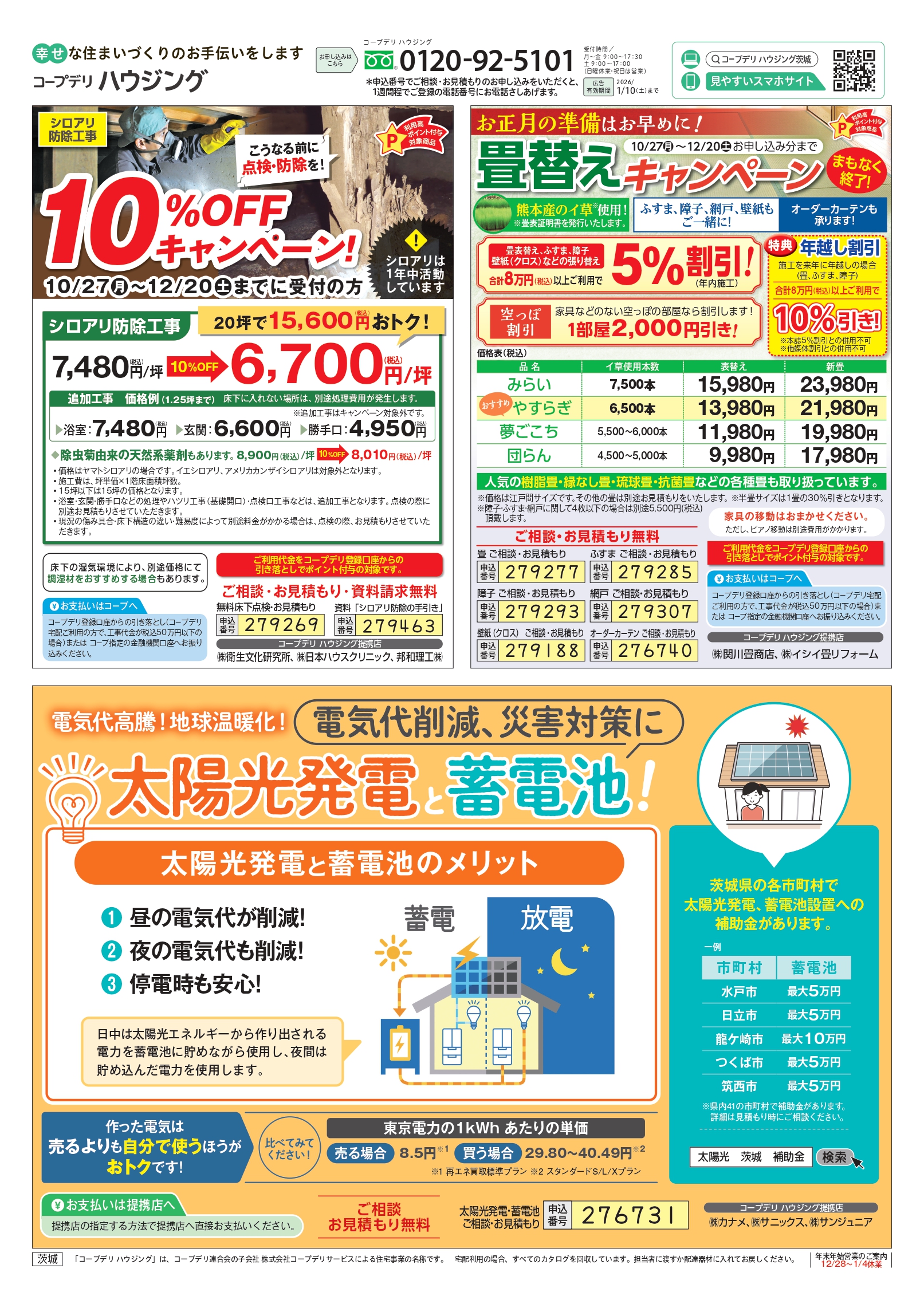 HOME毎月発行チラシ『ライフなび』茨城ライフなび 茨城 2025年12月1日号 ライフなび 茨城 2025年12月1日号 ライフなび 茨城 2025年12月1日号 毎月発行チラシ『ライフなび』一覧はこちら 施工事例 施工事例一覧 内装 外装 水回り 組合員の声 組合員の声一覧 カテゴリーなし お役立ち情報 暮らしに役立つ情報 リフォームメニュー表 毎月発行チラシ『ライフなび』 シロアリ防除について アフターフォロー お問い合わせ・お申し込みからお支払いまでの流れ よくある質問 お問い合わせ お問い合わせ 各エリアの情報はこちら 各エリア情報 東京 埼玉 千葉 茨城 群馬 長野 新潟 その他の情報はこちら チケット くらしのサービス 葬祭