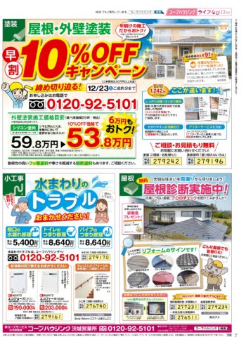 HOME毎月発行チラシ『ライフなび』茨城ライフなび 茨城 12月号 ライフなび 茨城 12月号 ライフなび 茨城 12月号 毎月発行チラシ『ライフなび』一覧はこちら 施工事例 施工事例一覧 内装 外装 水回り 組合員の声 組合員の声一覧 カテゴリーなし お役立ち情報 暮らしに役立つ情報 リフォームメニュー表 毎月発行チラシ『ライフなび』 シロアリ防除について アフターフォロー お問い合わせ・お申し込みからお支払いまでの流れ よくある質問 お問い合わせ お問い合わせ 各エリアの情報はこちら 各エリア情報 東京 埼玉 千葉 茨城 群馬 長野 新潟 その他の情報はこちら チケット くらしのサービス 葬祭