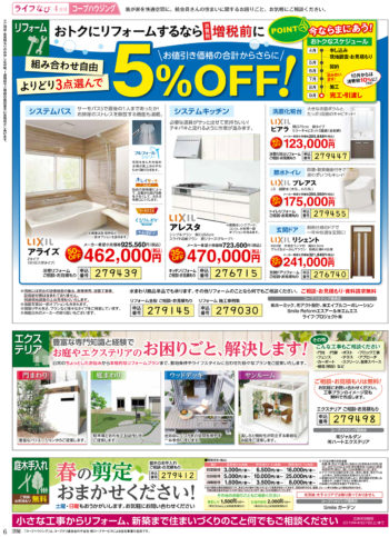 HOME毎月発行チラシ『ライフなび』茨城ライフなび 茨城 2019年4月号 ライフなび 茨城 2019年4月号 ライフなび 茨城 2019年4月号 毎月発行チラシ『ライフなび』一覧はこちら 施工事例 施工事例一覧 内装 外装 水回り 組合員の声 組合員の声一覧 カテゴリーなし お役立ち情報 暮らしに役立つ情報 リフォームメニュー表 毎月発行チラシ『ライフなび』 シロアリ防除について アフターフォロー お問い合わせ・お申し込みからお支払いまでの流れ よくある質問 お問い合わせ お問い合わせ 各エリアの情報はこちら 各エリア情報 東京 埼玉 千葉 茨城 群馬 長野 新潟 その他の情報はこちら チケット くらしのサービス 葬祭