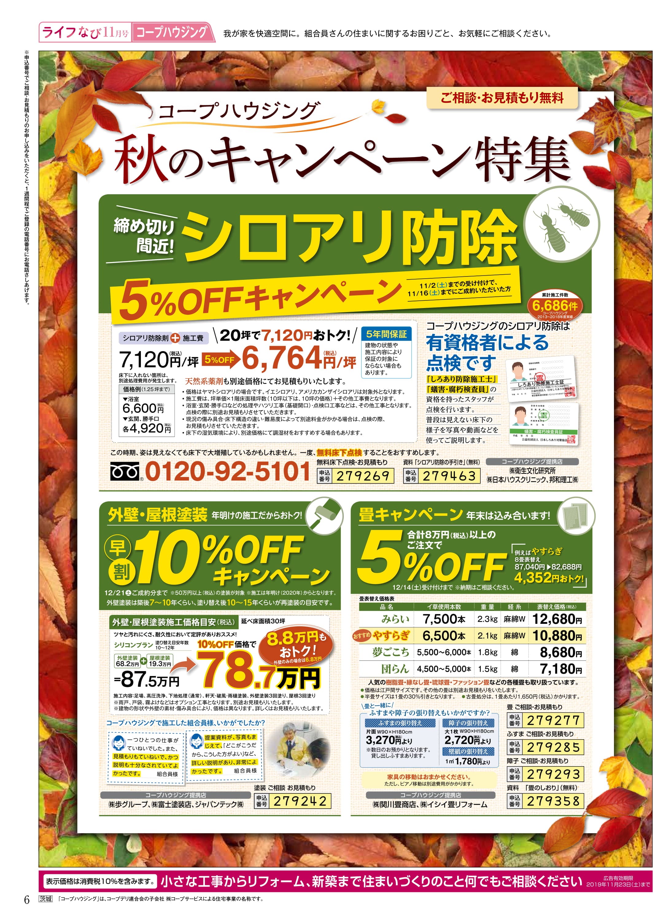 HOME毎月発行チラシ『ライフなび』茨城ライフなび 茨城 2019年11月号 ライフなび 茨城 2019年11月号 ライフなび 茨城 2019年11月号 毎月発行チラシ『ライフなび』一覧はこちら 施工事例 施工事例一覧 内装 外装 水回り 組合員の声 組合員の声一覧 カテゴリーなし お役立ち情報 暮らしに役立つ情報 リフォームメニュー表 毎月発行チラシ『ライフなび』 シロアリ防除について アフターフォロー お問い合わせ・お申し込みからお支払いまでの流れ よくある質問 お問い合わせ お問い合わせ 各エリアの情報はこちら 各エリア情報 東京 埼玉 千葉 茨城 群馬 長野 新潟 その他の情報はこちら チケット くらしのサービス 葬祭