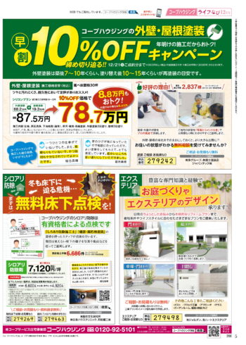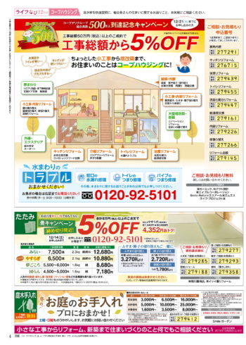 HOME毎月発行チラシ『ライフなび』茨城ライフなび 茨城 2019年12月号 ライフなび 茨城 2019年12月号 ライフなび 茨城 2019年12月号 毎月発行チラシ『ライフなび』一覧はこちら 施工事例 施工事例一覧 内装 外装 水回り 組合員の声 組合員の声一覧 カテゴリーなし お役立ち情報 暮らしに役立つ情報 リフォームメニュー表 毎月発行チラシ『ライフなび』 シロアリ防除について アフターフォロー お問い合わせ・お申し込みからお支払いまでの流れ よくある質問 お問い合わせ お問い合わせ 各エリアの情報はこちら 各エリア情報 東京 埼玉 千葉 茨城 群馬 長野 新潟 その他の情報はこちら チケット くらしのサービス 葬祭