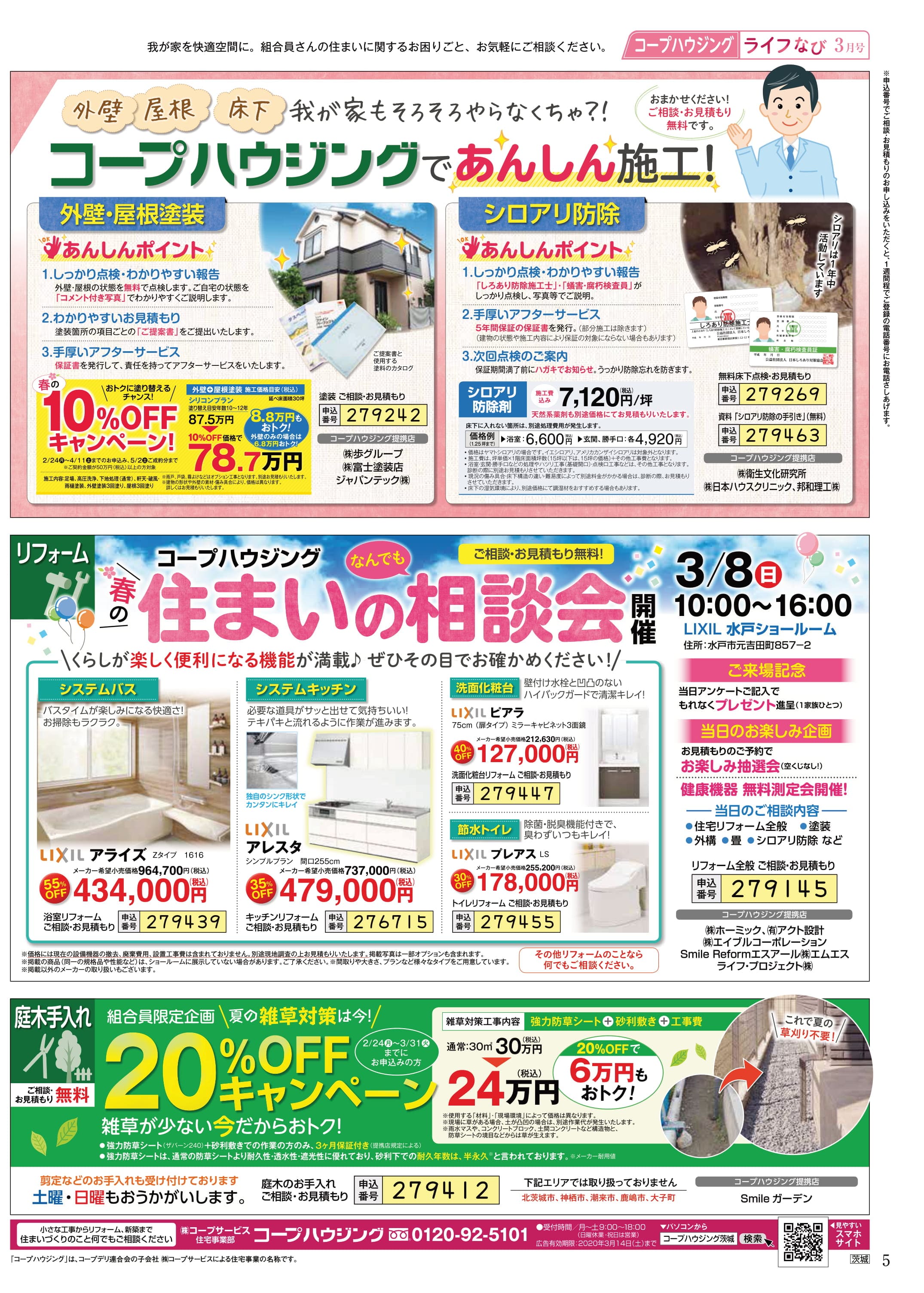 HOME毎月発行チラシ『ライフなび』茨城ライフなび 茨城 2020年3月号 ライフなび 茨城 2020年3月号 ライフなび 茨城 2020年3月号 毎月発行チラシ『ライフなび』一覧はこちら 施工事例 施工事例一覧 内装 外装 水回り 組合員の声 組合員の声一覧 カテゴリーなし お役立ち情報 暮らしに役立つ情報 リフォームメニュー表 毎月発行チラシ『ライフなび』 シロアリ防除について アフターフォロー お問い合わせ・お申し込みからお支払いまでの流れ よくある質問 お問い合わせ お問い合わせ 各エリアの情報はこちら 各エリア情報 東京 埼玉 千葉 茨城 群馬 長野 新潟 その他の情報はこちら チケット くらしのサービス 葬祭