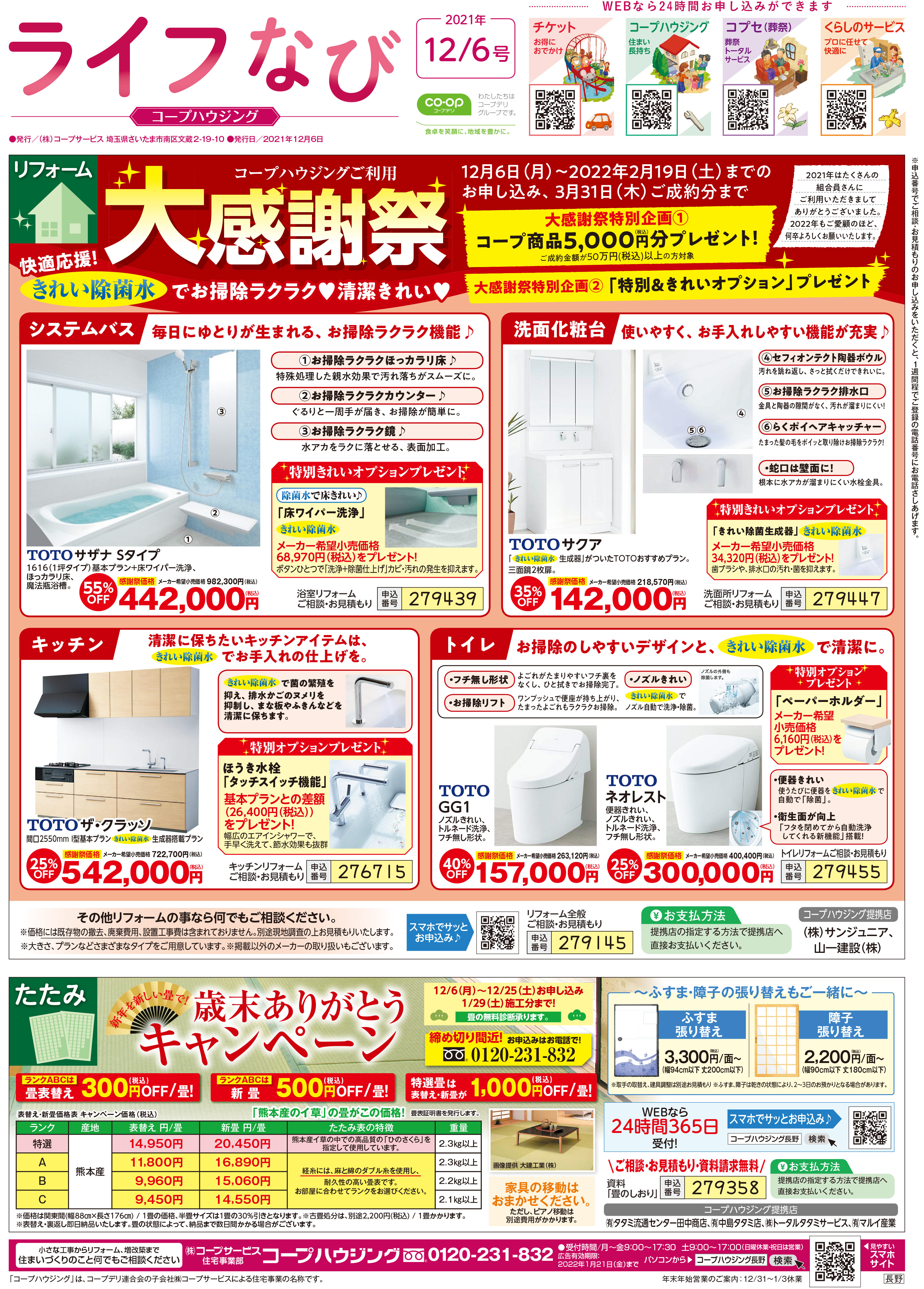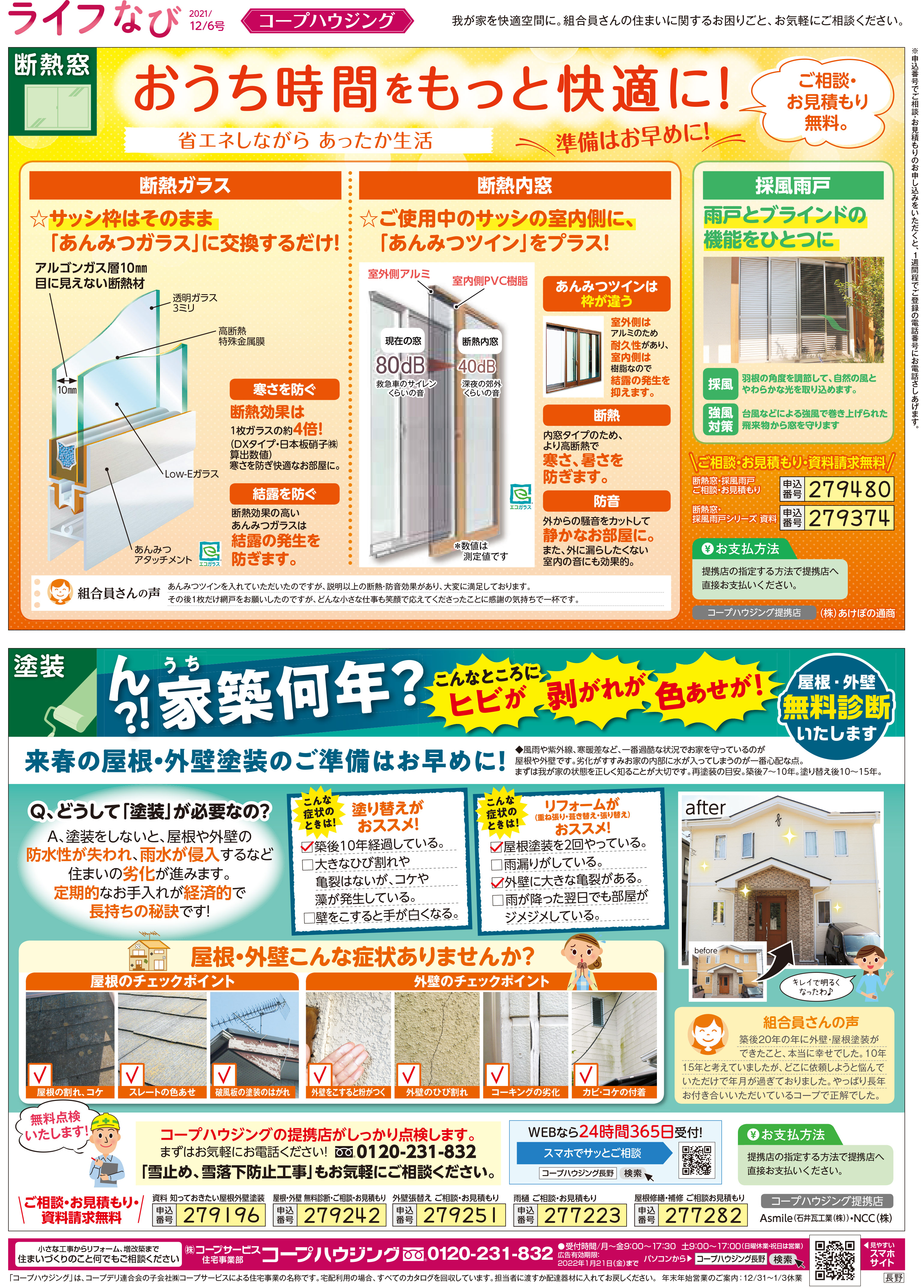 HOME毎月発行チラシ『ライフなび』長野ライフなび 長野 2021年12月6日号 ライフなび 長野 2021年12月6日号 ライフなび 長野 2021年12月6日号 毎月発行チラシ『ライフなび』一覧はこちら 施工事例 施工事例一覧 内装 外装 水回り 組合員の声 組合員の声一覧 カテゴリーなし お役立ち情報 暮らしに役立つ情報 リフォームメニュー表 毎月発行チラシ『ライフなび』 シロアリ防除について アフターフォロー お問い合わせ・お申し込みからお支払いまでの流れ よくある質問 お問い合わせ お問い合わせ 各エリアの情報はこちら 各エリア情報 東京 埼玉 千葉 茨城 群馬 長野 新潟 その他の情報はこちら チケット くらしのサービス 葬祭