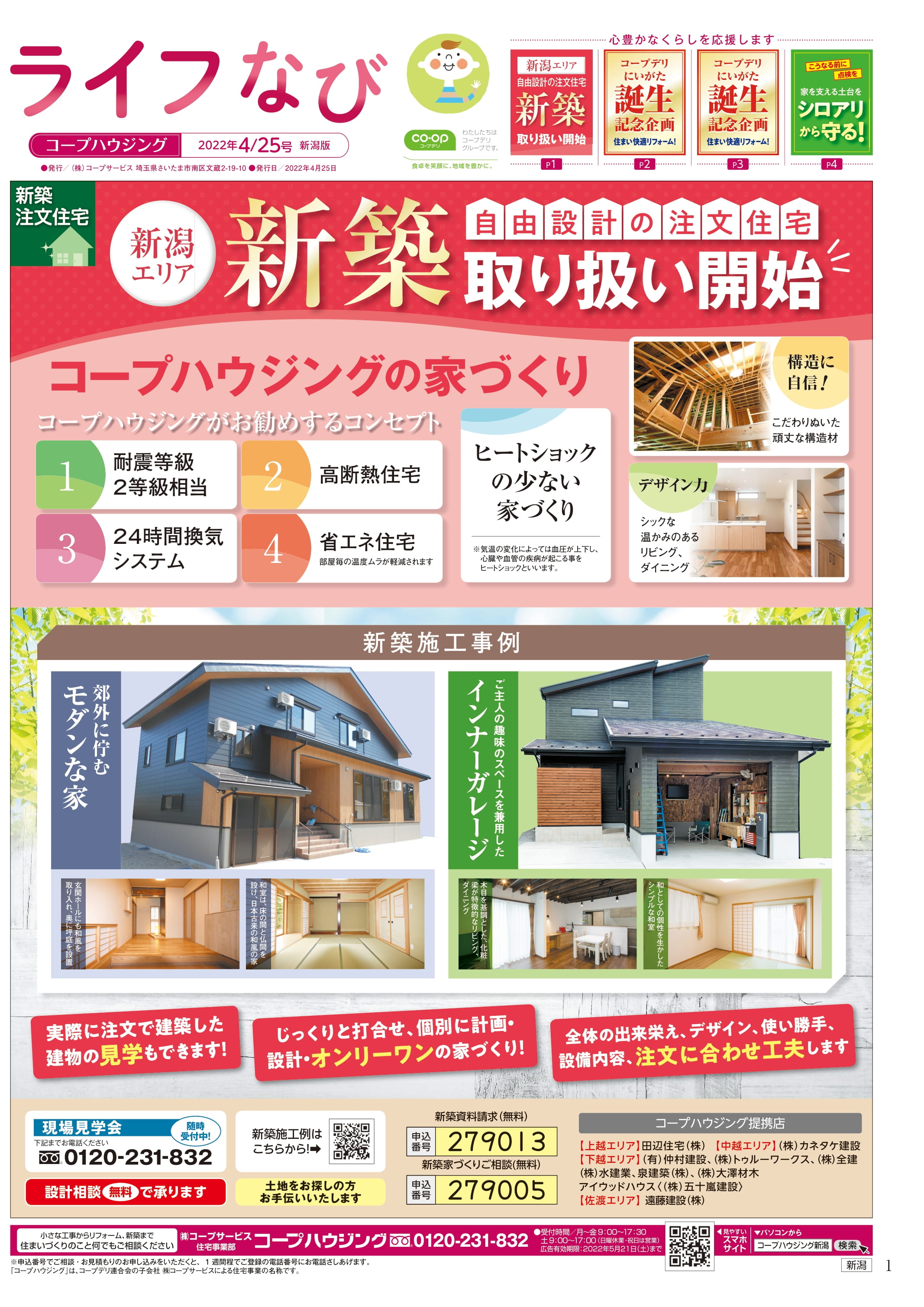 HOME毎月発行チラシ『ライフなび』新潟ライフなび 新潟 2022年4月25日号 ライフなび 新潟 2022年4月25日号 ライフなび 新潟 2022年4月25日号 毎月発行チラシ『ライフなび』一覧はこちら 施工事例 施工事例一覧 内装 外装 水回り 組合員の声 組合員の声一覧 カテゴリーなし お役立ち情報 暮らしに役立つ情報 リフォームメニュー表 毎月発行チラシ『ライフなび』 シロアリ防除について アフターフォロー お問い合わせ・お申し込みからお支払いまでの流れ よくある質問 お問い合わせ お問い合わせ 各エリアの情報はこちら 各エリア情報 東京 埼玉 千葉 茨城 群馬 長野 新潟 その他の情報はこちら チケット くらしのサービス 葬祭
