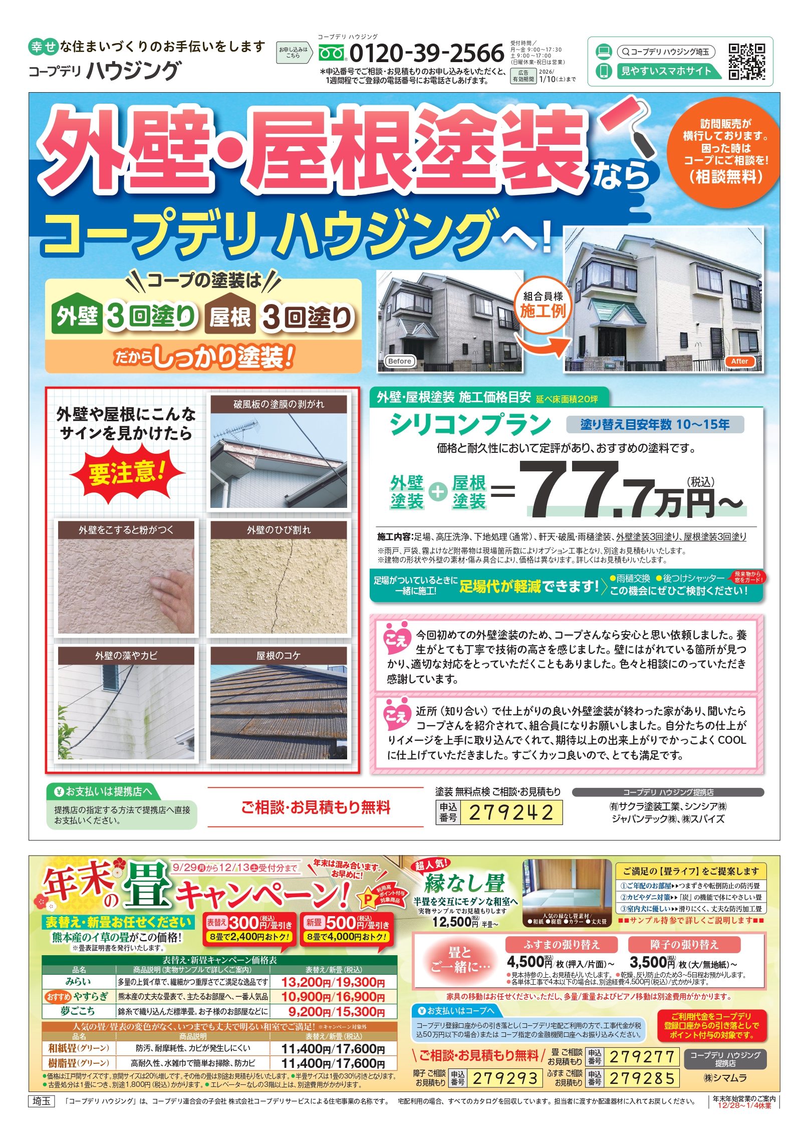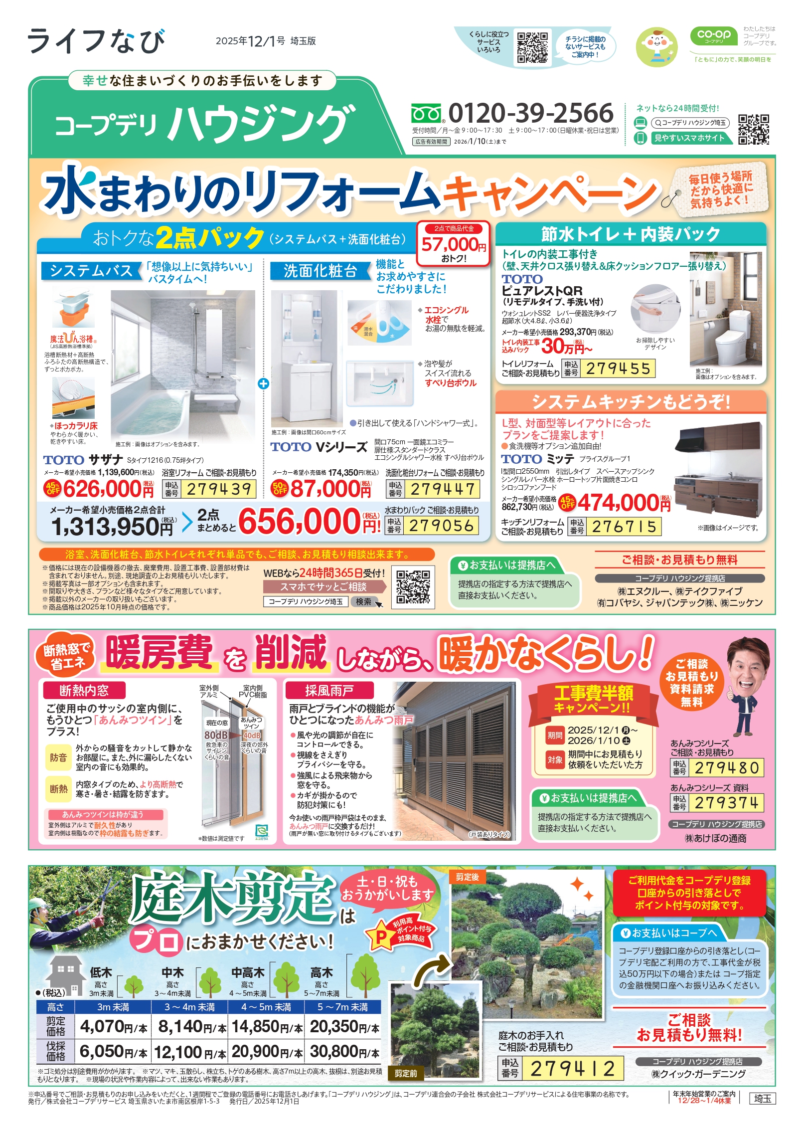 HOME毎月発行チラシ『ライフなび』埼玉ライフなび 埼玉 2025年12月1日号 ライフなび 埼玉 2025年12月1日号 ライフなび 埼玉 2025年12月1日号 毎月発行チラシ『ライフなび』一覧はこちら 施工事例 施工事例一覧 内装 外装 水回り 組合員の声 組合員の声一覧 カテゴリーなし お役立ち情報 暮らしに役立つ情報 リフォームメニュー表 毎月発行チラシ『ライフなび』 シロアリ防除について アフターフォロー お問い合わせ・お申し込みからお支払いまでの流れ よくある質問 お問い合わせ お問い合わせ 各エリアの情報はこちら 各エリア情報 東京 埼玉 千葉 茨城 群馬 長野 新潟 その他の情報はこちら チケット くらしのサービス 葬祭