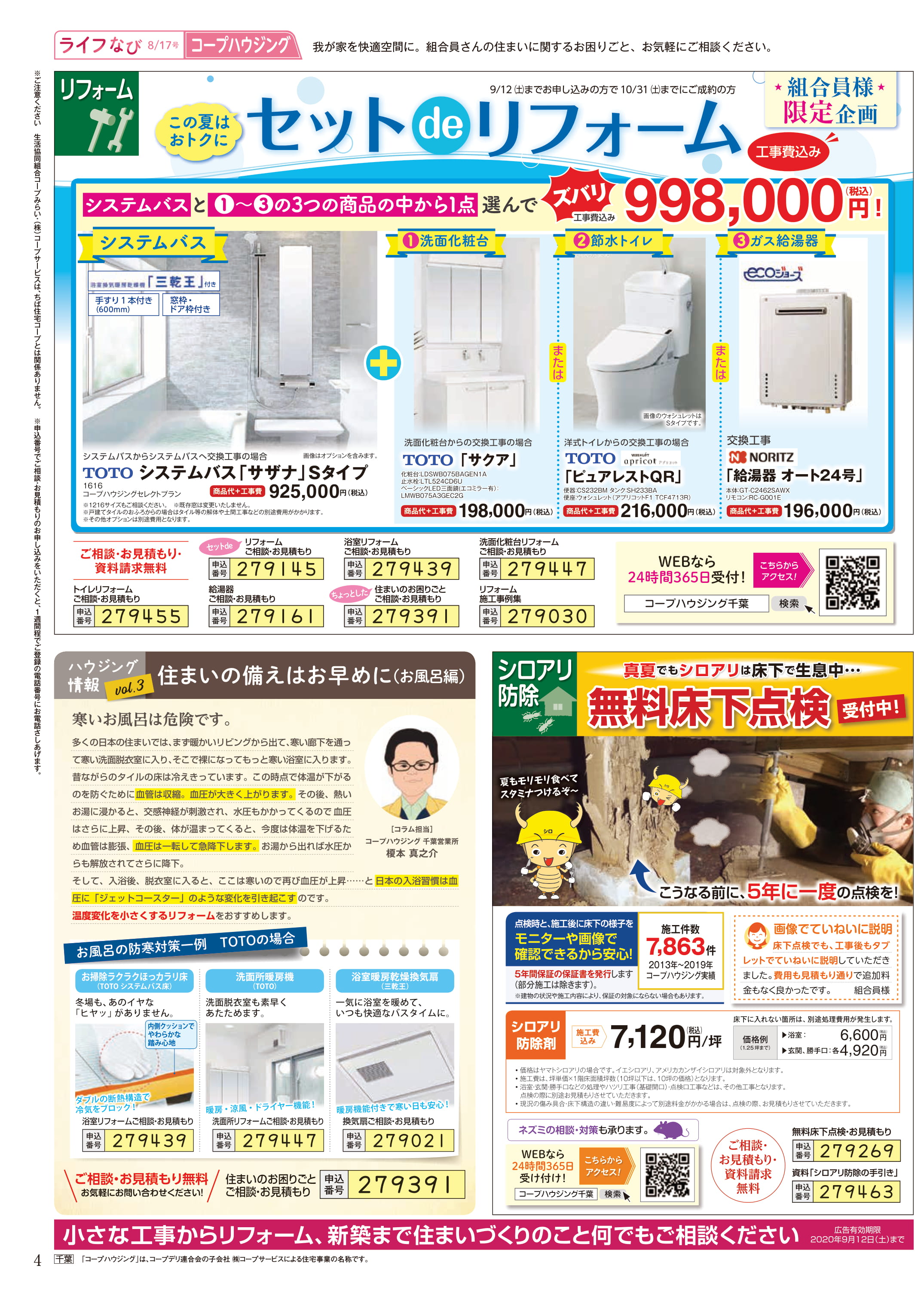 HOME毎月発行チラシ『ライフなび』千葉ライフなび 千葉 2020年8月17日号 ライフなび 千葉 2020年8月17日号 ライフなび 千葉 2020年8月17日号 毎月発行チラシ『ライフなび』一覧はこちら 施工事例 施工事例一覧 内装 外装 水回り 組合員の声 組合員の声一覧 カテゴリーなし お役立ち情報 暮らしに役立つ情報 リフォームメニュー表 毎月発行チラシ『ライフなび』 シロアリ防除について アフターフォロー お問い合わせ・お申し込みからお支払いまでの流れ よくある質問 お問い合わせ お問い合わせ 各エリアの情報はこちら 各エリア情報 東京 埼玉 千葉 茨城 群馬 長野 新潟 その他の情報はこちら チケット くらしのサービス 葬祭