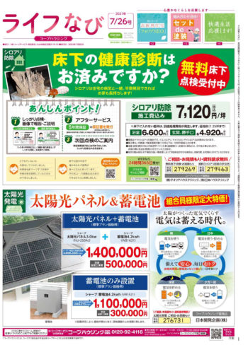 HOME毎月発行チラシ『ライフなび』千葉ライフなび 千葉 2021年7月26日号 ライフなび 千葉 2021年7月26日号 ライフなび 千葉 2021年7月26日号 毎月発行チラシ『ライフなび』一覧はこちら 施工事例 施工事例一覧 内装 外装 水回り 組合員の声 組合員の声一覧 カテゴリーなし お役立ち情報 暮らしに役立つ情報 リフォームメニュー表 毎月発行チラシ『ライフなび』 シロアリ防除について アフターフォロー お問い合わせ・お申し込みからお支払いまでの流れ よくある質問 お問い合わせ お問い合わせ 各エリアの情報はこちら 各エリア情報 東京 埼玉 千葉 茨城 群馬 長野 新潟 その他の情報はこちら チケット くらしのサービス 葬祭