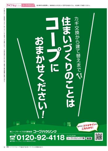 HOME毎月発行チラシ『ライフなび』千葉ライフなび 千葉 2018年4月号 ライフなび 千葉 2018年4月号 ライフなび 千葉 2018年4月号 毎月発行チラシ『ライフなび』一覧はこちら 施工事例 施工事例一覧 内装 外装 水回り 組合員の声 組合員の声一覧 カテゴリーなし お役立ち情報 暮らしに役立つ情報 リフォームメニュー表 毎月発行チラシ『ライフなび』 シロアリ防除について アフターフォロー お問い合わせ・お申し込みからお支払いまでの流れ よくある質問 お問い合わせ お問い合わせ 各エリアの情報はこちら 各エリア情報 東京 埼玉 千葉 茨城 群馬 長野 新潟 その他の情報はこちら チケット くらしのサービス 葬祭