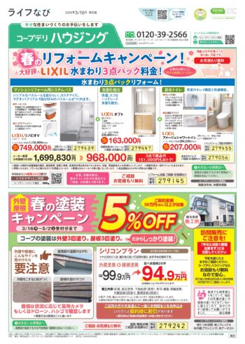 HOME毎月発行チラシ『ライフなび』東京 東京 ライフなび 東京 2026年4月13日号 ライフなび 東京 2026年3月16日号 ライフなび 東京 2026年2月16日号 ライフなび 東京 2026年1月12日号 ライフなび 東京 2025年12月1日号 ライフなび 東京 2025年10月27日号 ライフなび 東京 2025年9月29日号 ライフなび 東京 2025年9月8日号 ライフなび 東京 2025年8月4日号 ライフなび 東京 2025年6月30日号 毎月発行チラシ『ライフなび』一覧はこちら 施工事例 施工事例一覧 内装 外装 水回り 組合員の声 組合員の声一覧 カテゴリーなし お役立ち情報 暮らしに役立つ情報 リフォームメニュー表 毎月発行チラシ『ライフなび』 シロアリ防除について アフターフォロー お問い合わせ・お申し込みからお支払いまでの流れ よくある質問 お問い合わせ お問い合わせ 各エリアの情報はこちら 各エリア情報 東京 埼玉 千葉 茨城 群馬 長野 新潟 その他の情報はこちら チケット くらしのサービス 葬祭