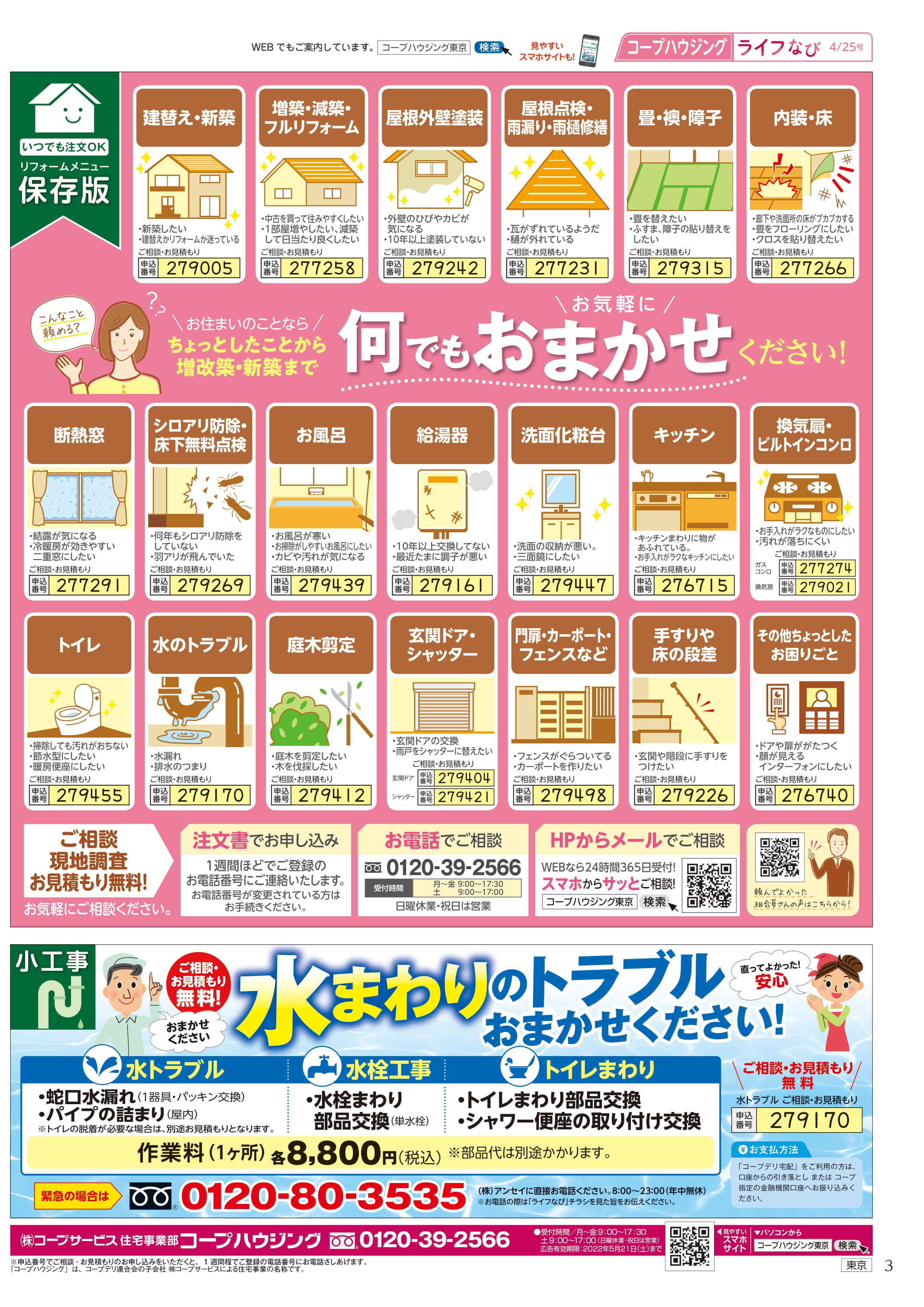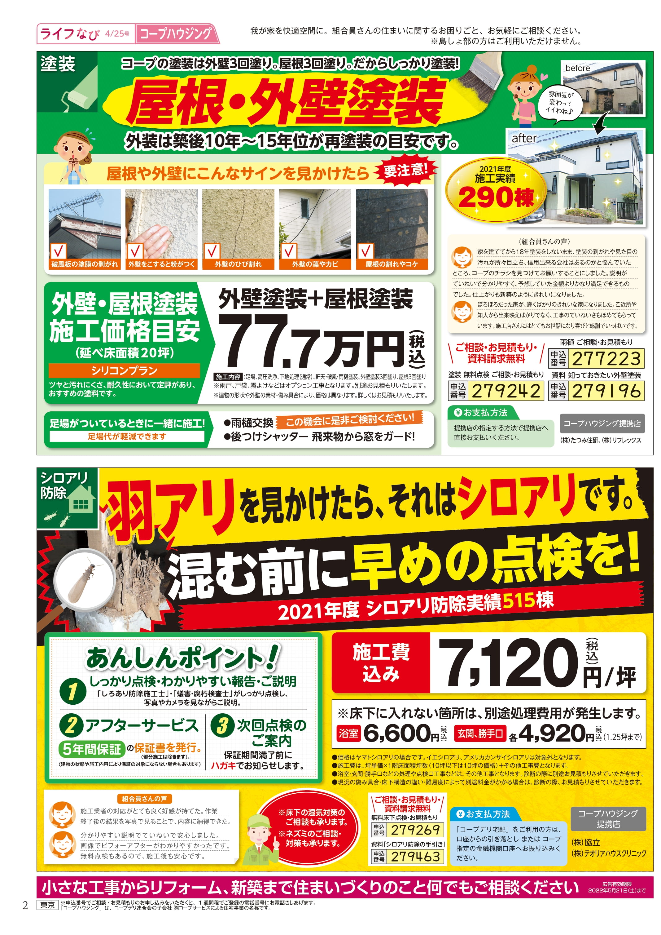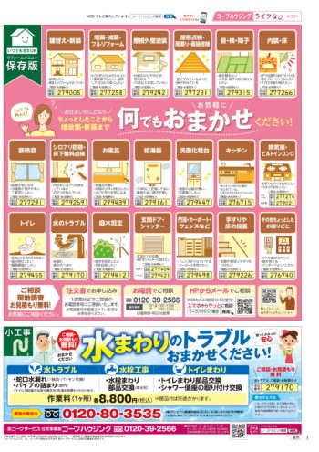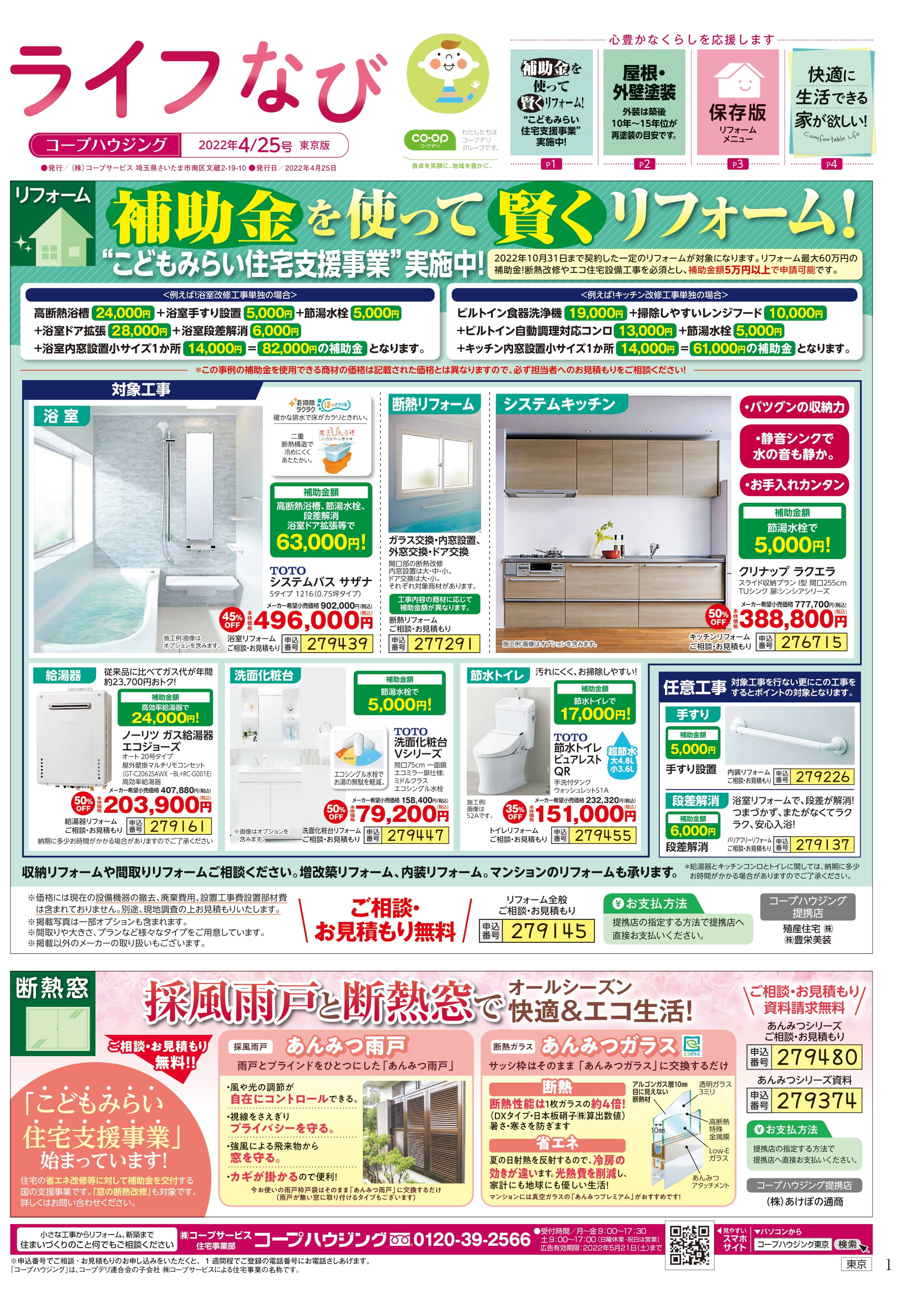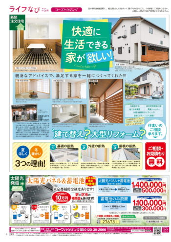 HOME毎月発行チラシ『ライフなび』東京ライフなび 東京 2022年4月25日号 ライフなび 東京 2022年4月25日号 ライフなび 東京 2022年4月25日号 毎月発行チラシ『ライフなび』一覧はこちら 施工事例 施工事例一覧 内装 外装 水回り 組合員の声 組合員の声一覧 カテゴリーなし お役立ち情報 暮らしに役立つ情報 リフォームメニュー表 毎月発行チラシ『ライフなび』 シロアリ防除について アフターフォロー お問い合わせ・お申し込みからお支払いまでの流れ よくある質問 お問い合わせ お問い合わせ 各エリアの情報はこちら 各エリア情報 東京 埼玉 千葉 茨城 群馬 長野 新潟 その他の情報はこちら チケット くらしのサービス 葬祭
