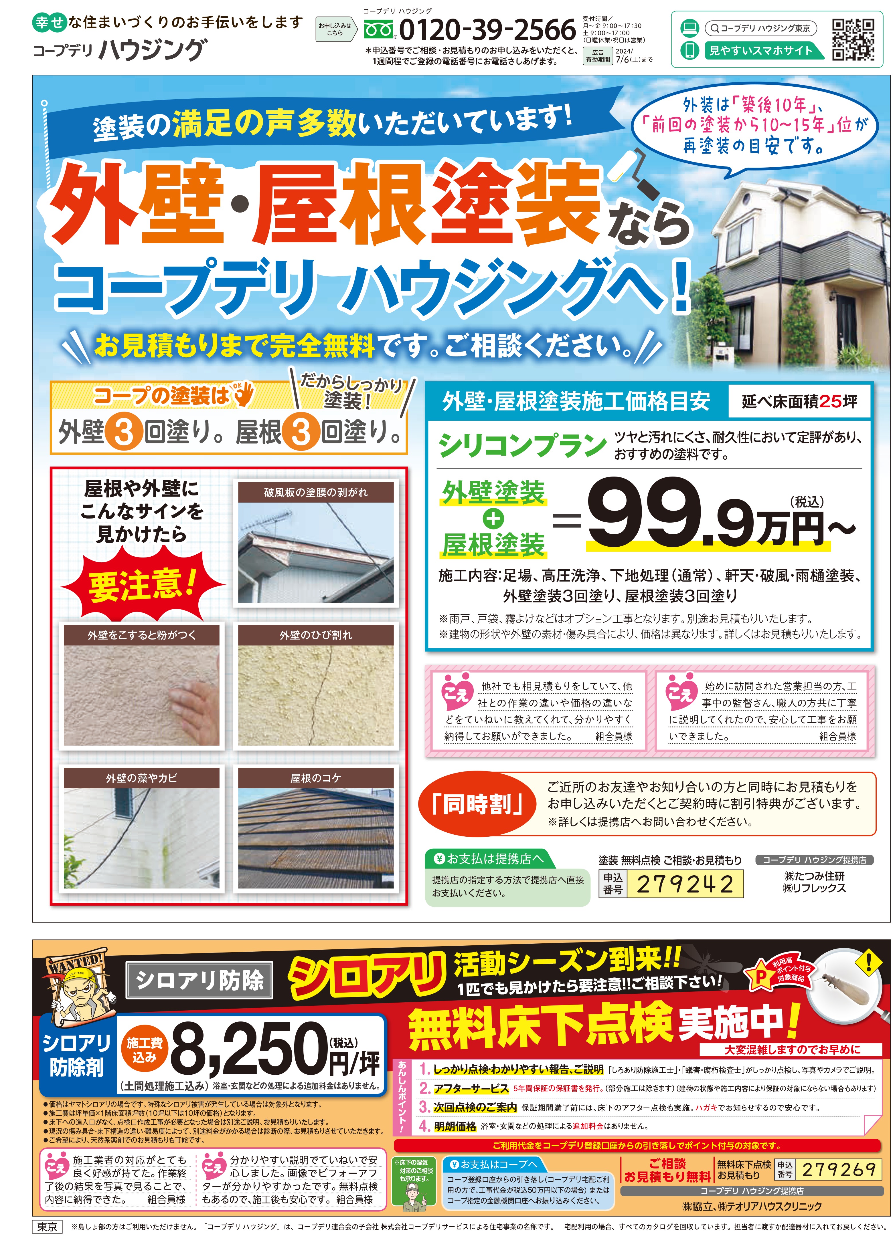HOME毎月発行チラシ『ライフなび』東京ライフなび 東京 2024年6月3日号 ライフなび 東京 2024年6月3日号 ライフなび 東京 2024年6月3日号 毎月発行チラシ『ライフなび』一覧はこちら 施工事例 施工事例一覧 内装 外装 水回り 組合員の声 組合員の声一覧 カテゴリーなし お役立ち情報 暮らしに役立つ情報 リフォームメニュー表 毎月発行チラシ『ライフなび』 シロアリ防除について アフターフォロー お問い合わせ・お申し込みからお支払いまでの流れ よくある質問 お問い合わせ お問い合わせ 各エリアの情報はこちら 各エリア情報 東京 埼玉 千葉 茨城 群馬 長野 新潟 その他の情報はこちら チケット くらしのサービス 葬祭