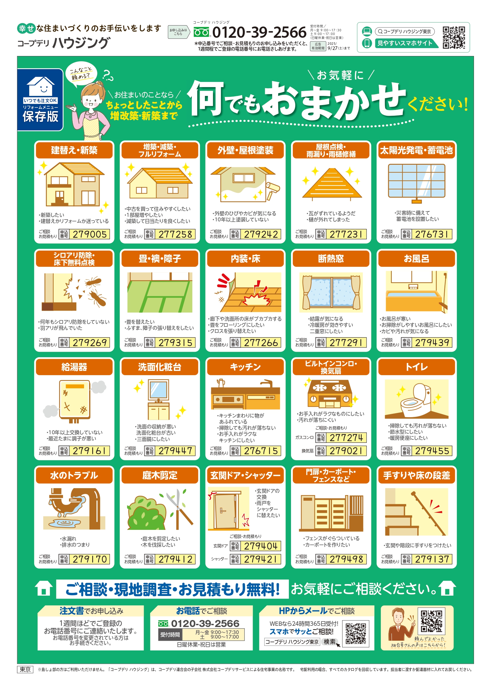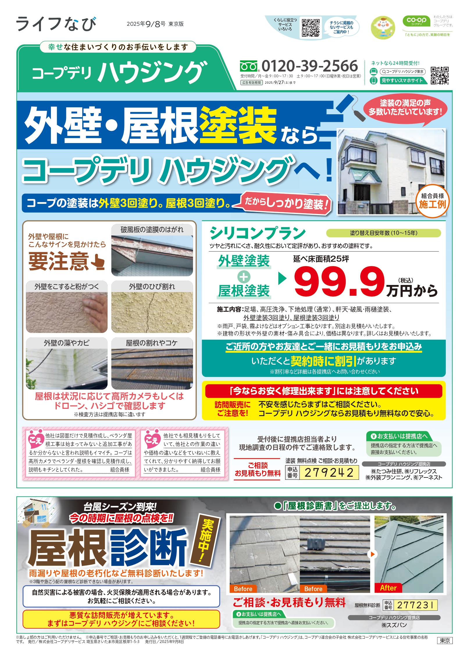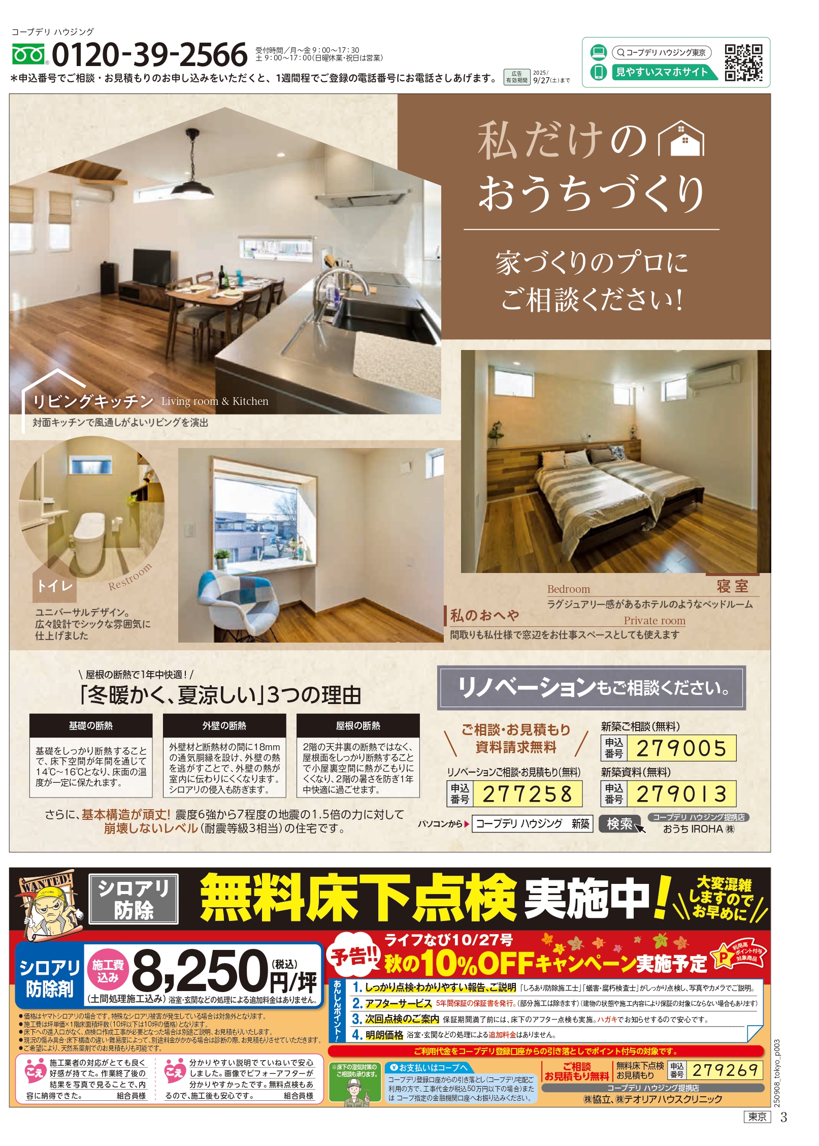 HOME毎月発行チラシ『ライフなび』東京ライフなび 東京 2025年9月8日号 ライフなび 東京 2025年9月8日号 ライフなび 東京 2025年9月8日号 毎月発行チラシ『ライフなび』一覧はこちら 施工事例 施工事例一覧 内装 外装 水回り 組合員の声 組合員の声一覧 カテゴリーなし お役立ち情報 暮らしに役立つ情報 リフォームメニュー表 毎月発行チラシ『ライフなび』 シロアリ防除について アフターフォロー お問い合わせ・お申し込みからお支払いまでの流れ よくある質問 お問い合わせ お問い合わせ 各エリアの情報はこちら 各エリア情報 東京 埼玉 千葉 茨城 群馬 長野 新潟 その他の情報はこちら チケット くらしのサービス 葬祭