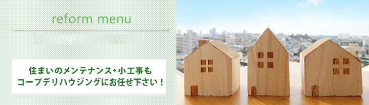 HOMEリフォームメニュー表メンテナンス・小工事 メンテナンス・小工事 小工事 フローリング キッチン用水栓交換 レンジフード交換 内窓取付 玄関ドア交換 クッションフロアー張替え 給湯器交換 壁紙張替え メンテナンス 畳・障子・ふすま エクステリア 庭木剪定 カーテン・ブラインド リフォームメニュー表一覧はこちら 施工事例 施工事例一覧 内装 外装 水回り 組合員の声 組合員の声一覧 カテゴリーなし お役立ち情報 暮らしに役立つ情報 リフォームメニュー表 毎月発行チラシ『ライフなび』 シロアリ防除について アフターフォロー お問い合わせ・お申し込みからお支払いまでの流れ よくある質問 お問い合わせ お問い合わせ 各エリアの情報はこちら 各エリア情報 東京 埼玉 千葉 茨城 群馬 長野 新潟 その他の情報はこちら チケット くらしのサービス 葬祭