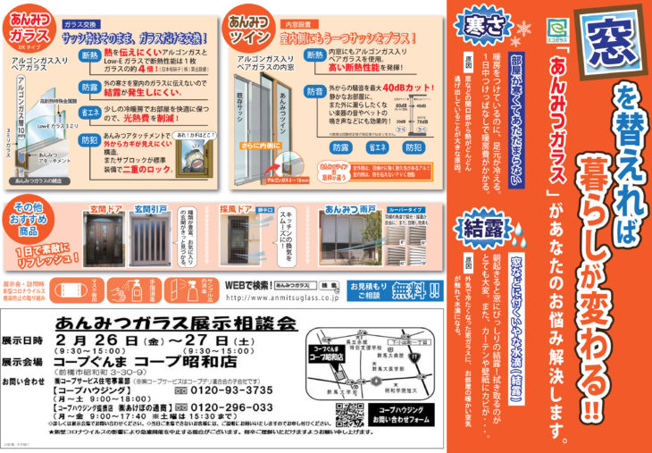 群馬 あんみつガラス展示相談会 2月26日(金)~2月27日(土)「コープ昭和店」