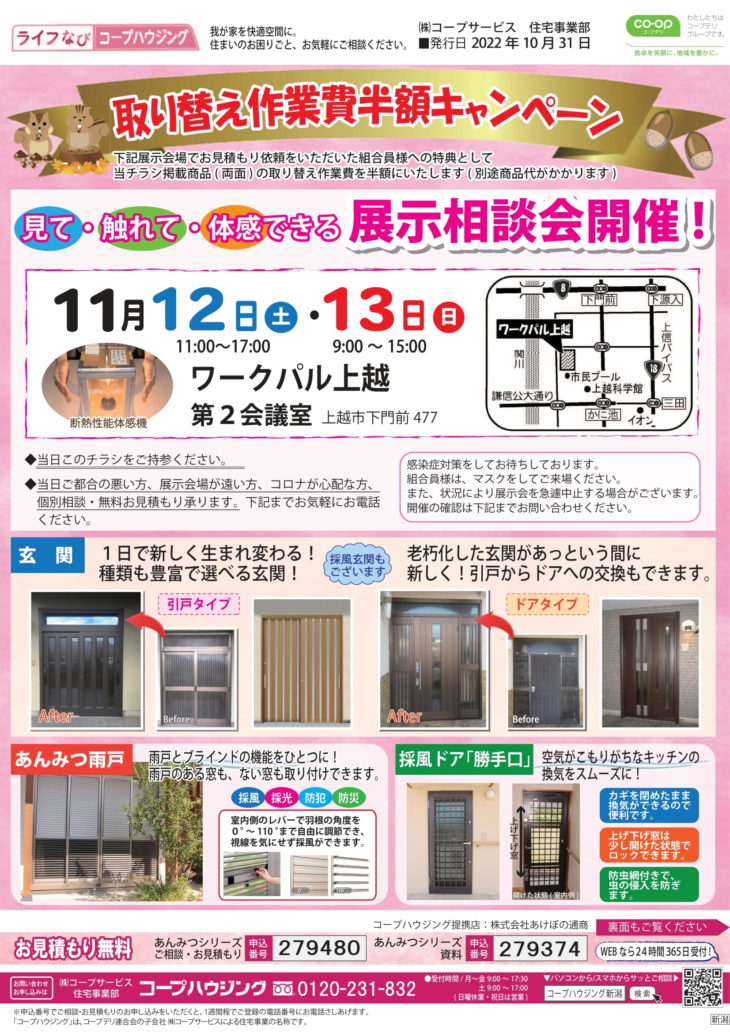HOME各エリア情報新潟新潟 あんみつガラス展示相談会 11月12日(土)13日(日) ワークパル上越 新潟 あんみつガラス展示相談会 11月12日(土)13日(日) ワークパル上越 投稿日:2022年10月31日 画面をクリックすると大きな画面に移動します 最新の投稿 新潟 2026年1月 営業所ブログ 長野 2026年1月 営業所ブログ 群馬 2026年1月 営業所ブログ 茨城 2026年1月 営業所ブログ 千葉 2026年1月 営業所ブログ 埼玉 2026年1月 営業所ブログ 東京 2026年1月 営業所ブログ 新潟 2025年12月 営業所ブログ 長野 2025年12月 営業所ブログ 群馬 2025年12月 営業所ブログ カテゴリー 東京 埼玉 千葉 茨城 群馬 長野 新潟 月別アーカイブ 2026年1月 2025年12月 2025年11月 2025年10月 2025年9月 2025年8月 2025年7月 2025年6月 2025年5月 2025年4月 2025年3月 2025年2月 施工事例 施工事例一覧 内装 外装 水回り 組合員の声 組合員の声一覧 カテゴリーなし お役立ち情報 暮らしに役立つ情報 リフォームメニュー表 毎月発行チラシ『ライフなび』 シロアリ防除について アフターフォロー お問い合わせ・お申し込みからお支払いまでの流れ よくある質問 お問い合わせ お問い合わせ 各エリアの情報はこちら 各エリア情報 東京 埼玉 千葉 茨城 群馬 長野 新潟 その他の情報はこちら チケット くらしのサービス 葬祭