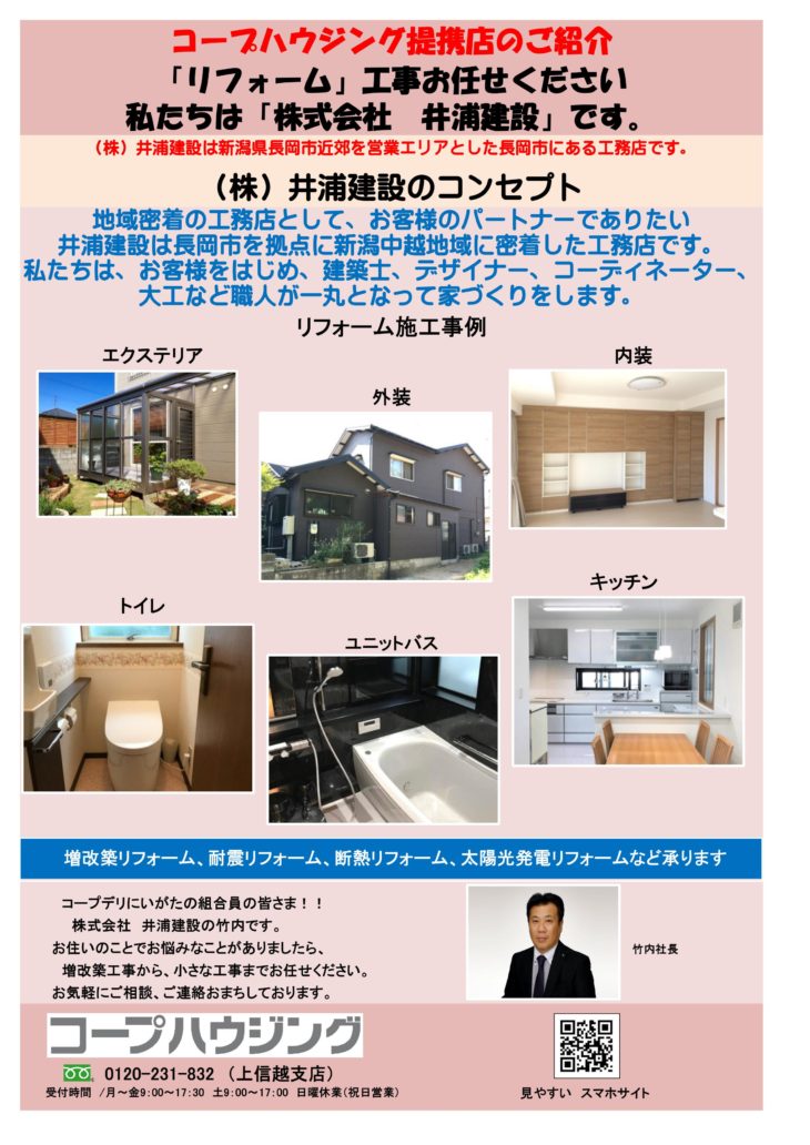 HOME各エリア情報新潟新潟 2023年4月 営業所ブログ 新潟 2023年4月 営業所ブログ 投稿日:2023年4月3日 画面をクリックすると大きな画面に移動します 最新の投稿 新潟 2026年1月 営業所ブログ 長野 2026年1月 営業所ブログ 群馬 2026年1月 営業所ブログ 茨城 2026年1月 営業所ブログ 千葉 2026年1月 営業所ブログ 埼玉 2026年1月 営業所ブログ 東京 2026年1月 営業所ブログ 新潟 2025年12月 営業所ブログ 長野 2025年12月 営業所ブログ 群馬 2025年12月 営業所ブログ カテゴリー 東京 埼玉 千葉 茨城 群馬 長野 新潟 月別アーカイブ 2026年1月 2025年12月 2025年11月 2025年10月 2025年9月 2025年8月 2025年7月 2025年6月 2025年5月 2025年4月 2025年3月 2025年2月 施工事例 施工事例一覧 内装 外装 水回り 組合員の声 組合員の声一覧 カテゴリーなし お役立ち情報 暮らしに役立つ情報 リフォームメニュー表 毎月発行チラシ『ライフなび』 シロアリ防除について アフターフォロー お問い合わせ・お申し込みからお支払いまでの流れ よくある質問 お問い合わせ お問い合わせ 各エリアの情報はこちら 各エリア情報 東京 埼玉 千葉 茨城 群馬 長野 新潟 その他の情報はこちら チケット くらしのサービス 葬祭