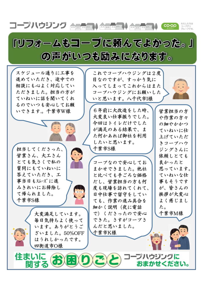 HOME各エリア情報千葉千葉 2022年12月 営業所ブログ 千葉 2022年12月 営業所ブログ 投稿日:2022年12月12日 画面をクリックすると大きな画面に移動します 最新の投稿 新潟 2026年1月 営業所ブログ 長野 2026年1月 営業所ブログ 群馬 2026年1月 営業所ブログ 茨城 2026年1月 営業所ブログ 千葉 2026年1月 営業所ブログ 埼玉 2026年1月 営業所ブログ 東京 2026年1月 営業所ブログ 新潟 2025年12月 営業所ブログ 長野 2025年12月 営業所ブログ 群馬 2025年12月 営業所ブログ カテゴリー 東京 埼玉 千葉 茨城 群馬 長野 新潟 月別アーカイブ 2026年1月 2025年12月 2025年11月 2025年10月 2025年9月 2025年8月 2025年7月 2025年6月 2025年5月 2025年4月 2025年3月 2025年2月 施工事例 施工事例一覧 内装 外装 水回り 組合員の声 組合員の声一覧 カテゴリーなし お役立ち情報 暮らしに役立つ情報 リフォームメニュー表 毎月発行チラシ『ライフなび』 シロアリ防除について アフターフォロー お問い合わせ・お申し込みからお支払いまでの流れ よくある質問 お問い合わせ お問い合わせ 各エリアの情報はこちら 各エリア情報 東京 埼玉 千葉 茨城 群馬 長野 新潟 その他の情報はこちら チケット くらしのサービス 葬祭