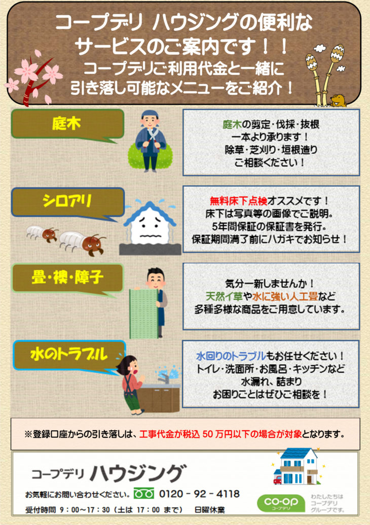 HOME各エリア情報千葉千葉 2024年4月 営業所ブログ 千葉 2024年4月 営業所ブログ 投稿日:2024年4月1日 画面をクリックすると大きな画面に移動します 最新の投稿 新潟 2026年1月 営業所ブログ 長野 2026年1月 営業所ブログ 群馬 2026年1月 営業所ブログ 茨城 2026年1月 営業所ブログ 千葉 2026年1月 営業所ブログ 埼玉 2026年1月 営業所ブログ 東京 2026年1月 営業所ブログ 新潟 2025年12月 営業所ブログ 長野 2025年12月 営業所ブログ 群馬 2025年12月 営業所ブログ カテゴリー 東京 埼玉 千葉 茨城 群馬 長野 新潟 月別アーカイブ 2026年1月 2025年12月 2025年11月 2025年10月 2025年9月 2025年8月 2025年7月 2025年6月 2025年5月 2025年4月 2025年3月 2025年2月 施工事例 施工事例一覧 内装 外装 水回り 組合員の声 組合員の声一覧 カテゴリーなし お役立ち情報 暮らしに役立つ情報 リフォームメニュー表 毎月発行チラシ『ライフなび』 シロアリ防除について アフターフォロー お問い合わせ・お申し込みからお支払いまでの流れ よくある質問 お問い合わせ お問い合わせ 各エリアの情報はこちら 各エリア情報 東京 埼玉 千葉 茨城 群馬 長野 新潟 その他の情報はこちら チケット くらしのサービス 葬祭