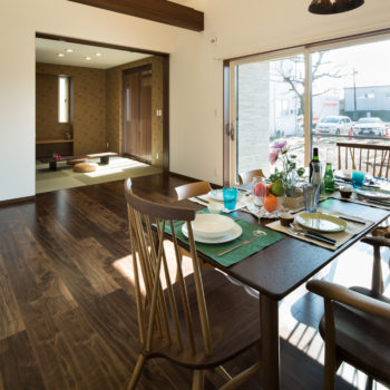 | ご提案内容 | お家のどこにいても暖かいように、外断熱・高気密・高断熱仕様・24時間換気システム・オール電化の設置をご提案させていただきました。リビング、和室、キッチンには省エネタイプ床暖房を設置し、家族の皆様が常に暖かい場に居られるようにいたしました。また、どの部屋にいてもリラックスしていただけるような、こだわりの内装にさせていただきました。 |