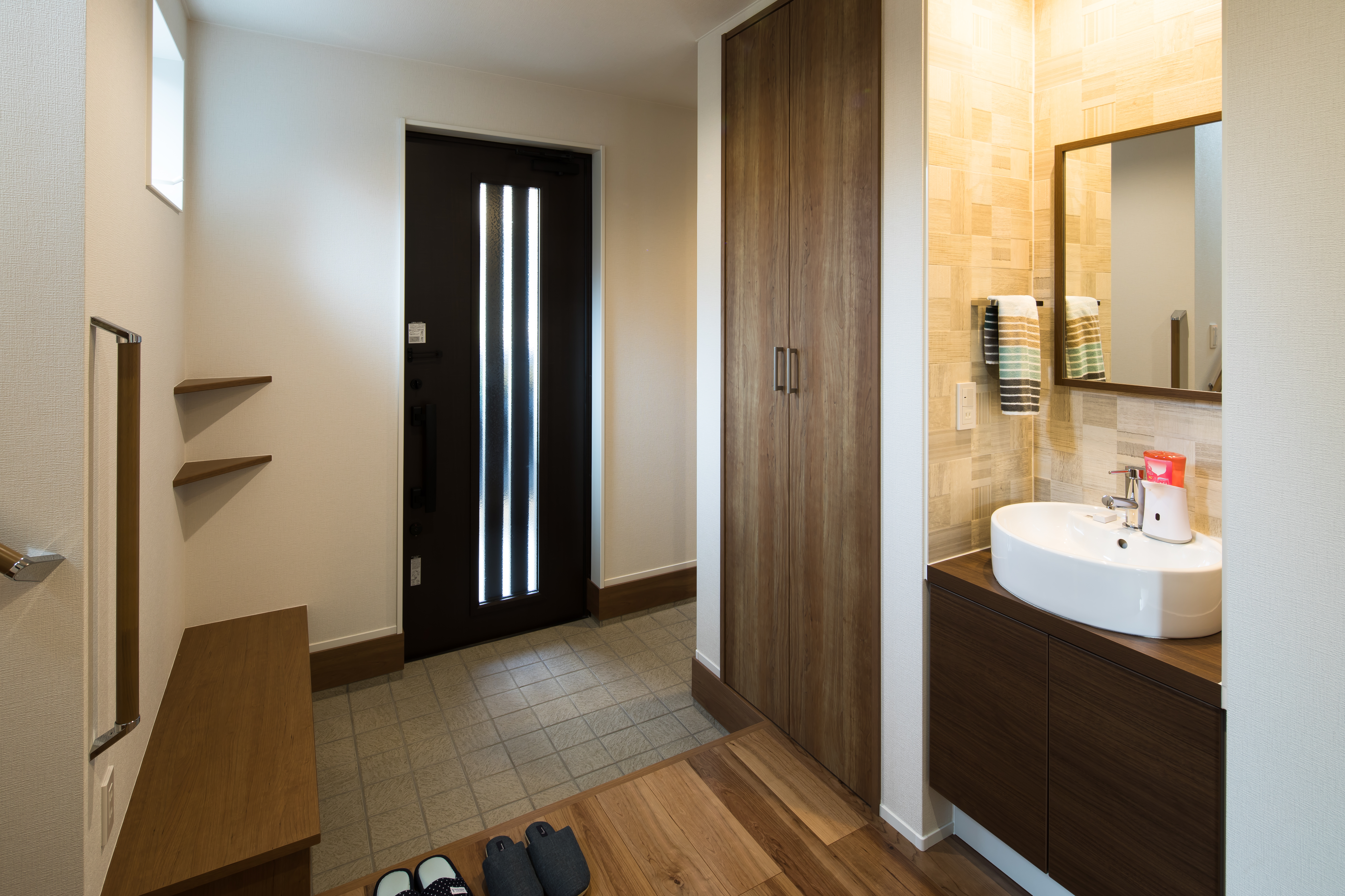 | お客様のご要望 | 今まで住んでいた家が手狭になり新たに新築しました。25坪の土地を最大限活かした家造りを目指し、『家族がゆったりくつろげる家』をコンセプトに、間取りプランニングを何度も行いました。 私達の要望は、 ①暖かく結露しない省エネ性の高い家 ②間仕切りが少ないオープンスペース ③収納は多めで、玄関には広いシューズクロークを ④洗濯物が干せる広い洗面脱衣室 ⑤明るい2階リビング ⑥車2台分の駐車場 等々 沢山の要望を出しました。 家族の気配を感じられる工夫をし、土地を最大限に活かした仕様と間取りを実現していただき、夫婦と子ども2人の4人全員が納得の家になりました! |