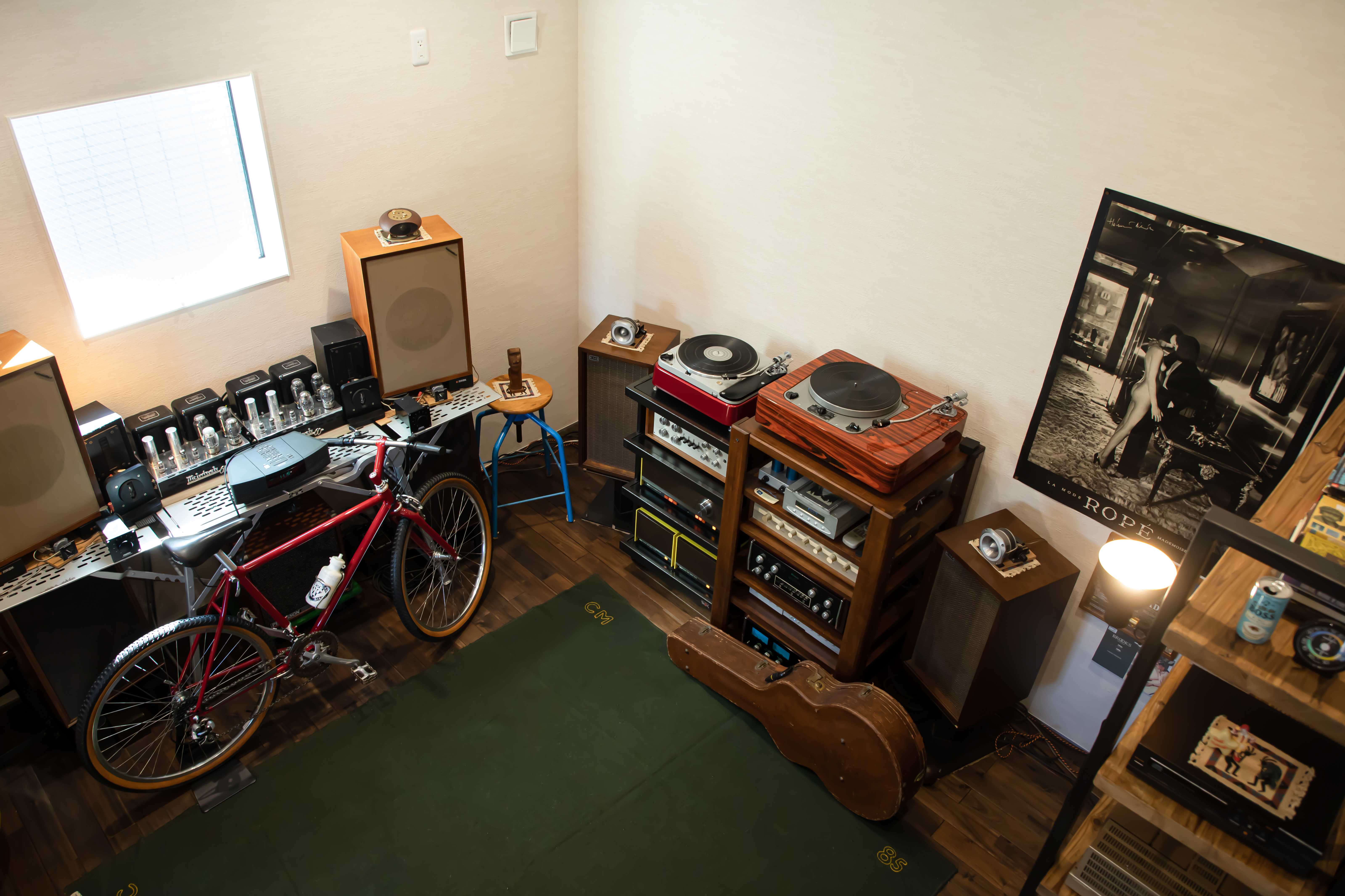 | お客様のご要望 | T様邸は2世帯住宅。今回はお父様が生活する住まいをご紹介します。 T様にとっての家づくりは「自分が楽しく生活できる空間を造る」ことでした。1階のLDKや2階の寝室兼趣味の部屋は、仕切りのない1フロアにして、広々とした空間にご自身が手入れしながら何十年も使い続けてきた、洋服、オーディオ(レコードプレーヤー)、自転車や小物など愛着のある品々を美しくディスプレイする、そんな楽しくてワクワクする夢のような住まいが完成しました。 この家に住んでから、大切な革ジャンがほとんどカビなくなった!と家の性能(24時間換気等)についても喜んでいただきました。 |